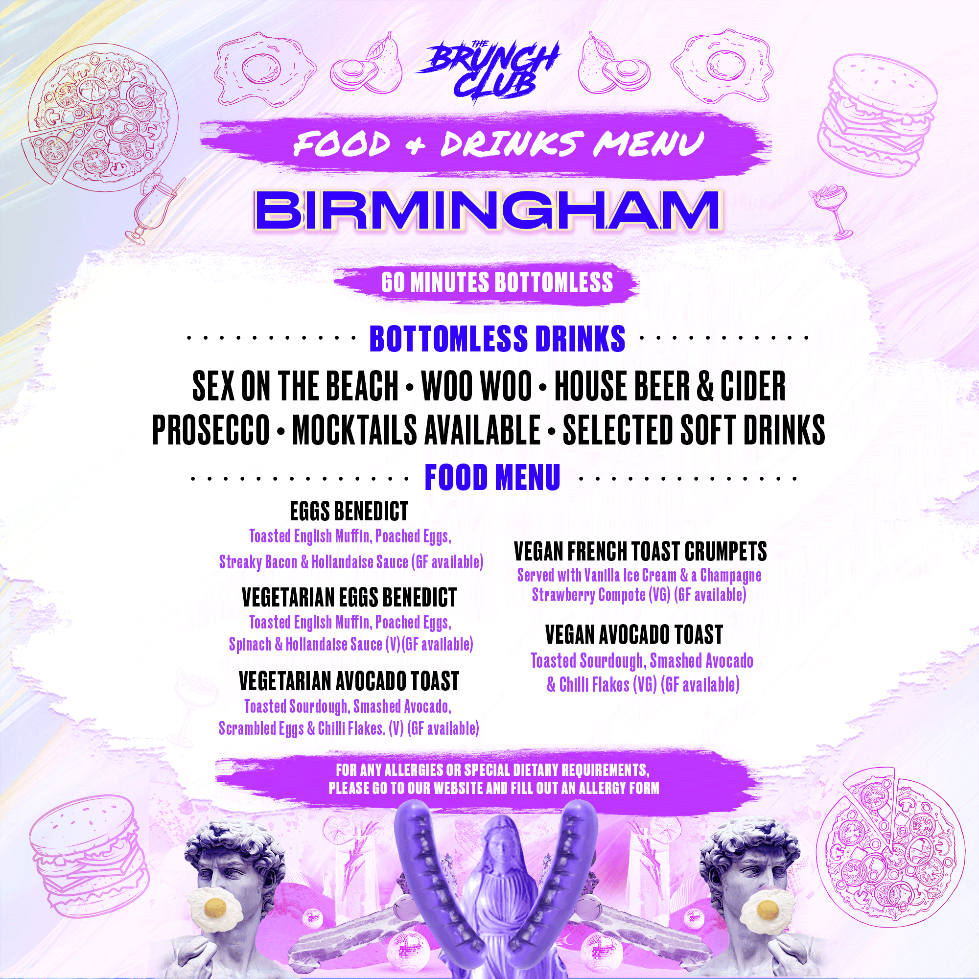 Food Allergies – Please Email: allergies@thebrunchclub.co.uk