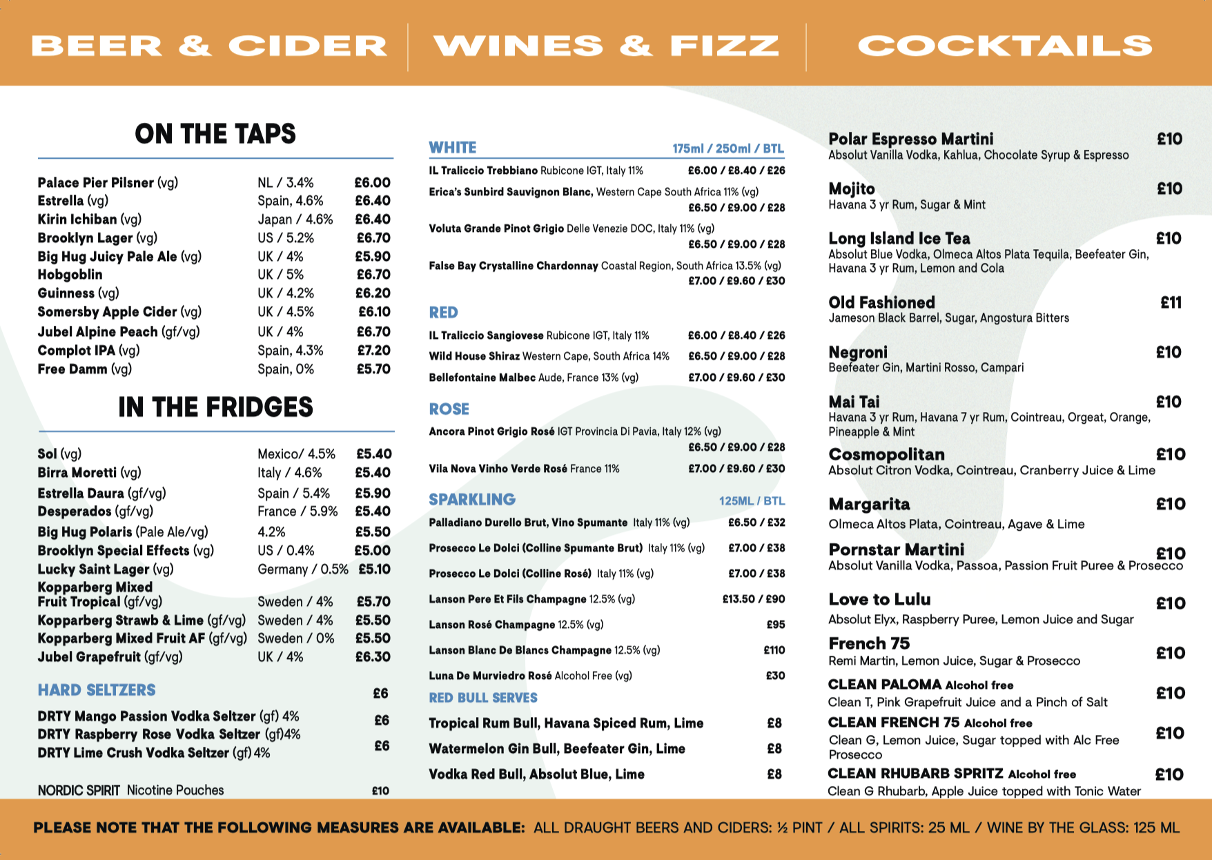 The south-facing sea-view terrace provides the perfect spot for after-work or pre-club drinks, offering you an idyllic view of the Brighton seascape. The terrace also hosts iconic parties in the summer, turning to unparalleled club nights in the basement.