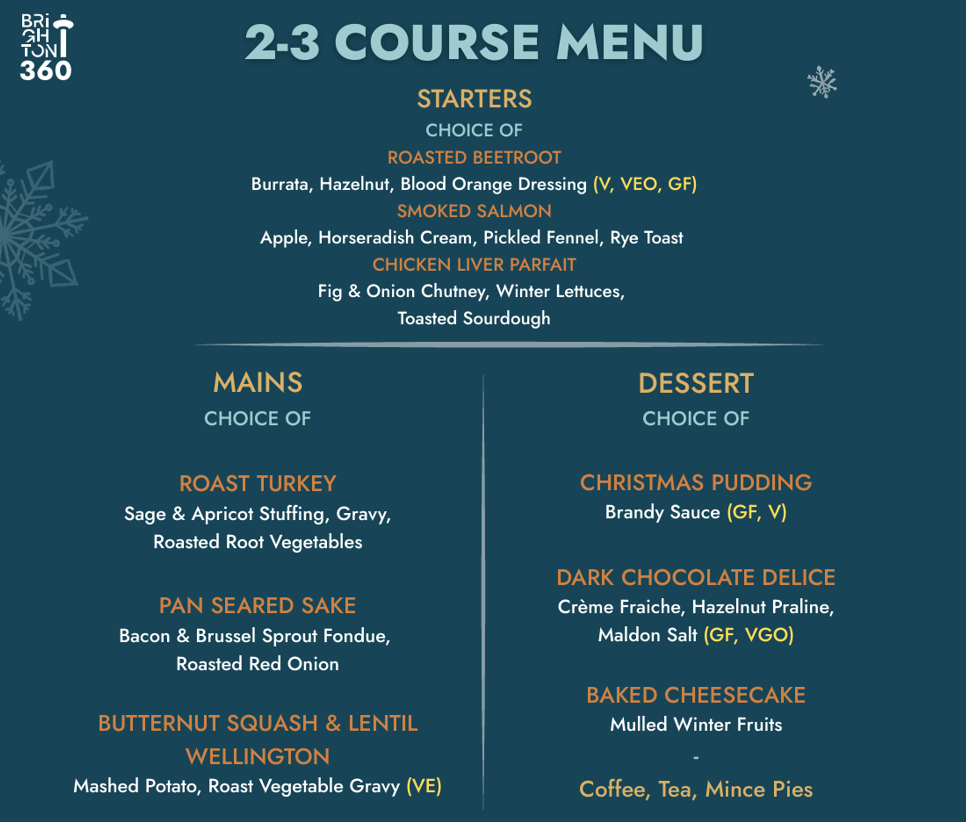 - 2 Course Festive set dining meal