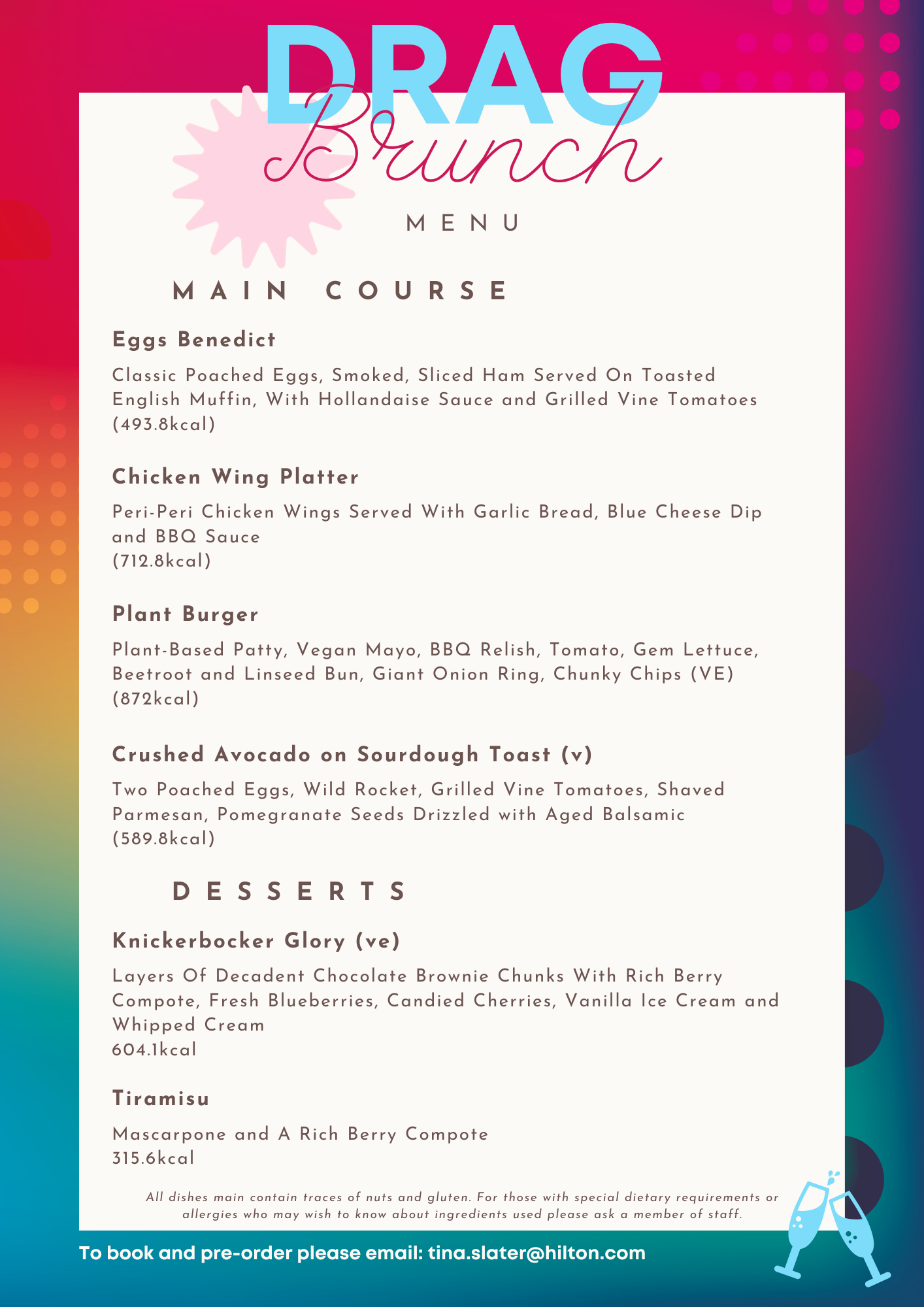 Please pre-order from the menu below by emailing tina.slater@hilton.com