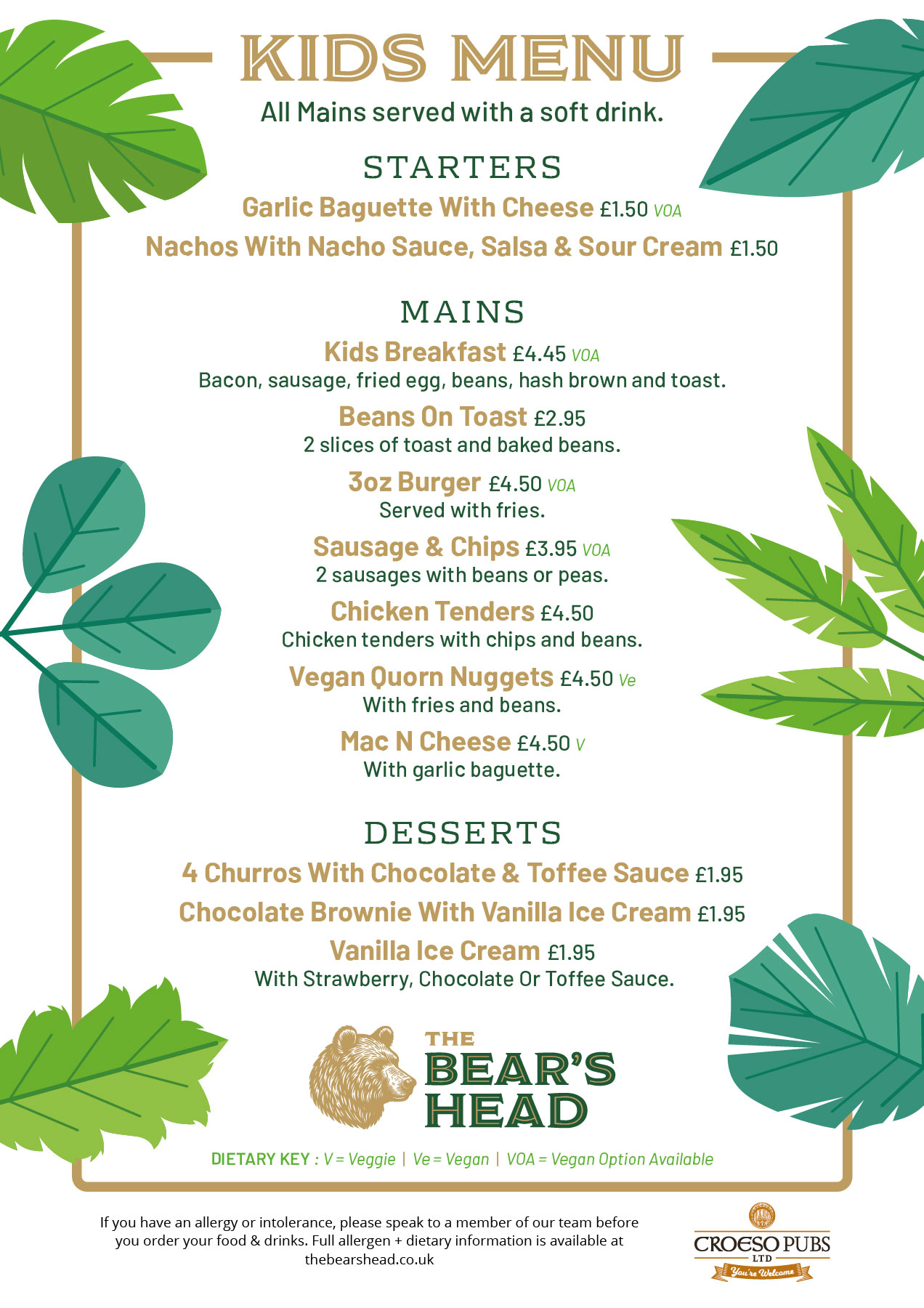 Behind the bar, you’ll find a great range of draught beers, local ales (including our exclusive Bear’s Head Ale), wines, spirits and soft drinks – all at wallet-friendly prices.