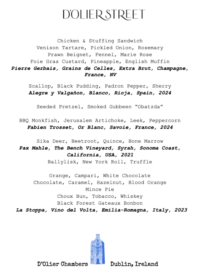 At the helm is executive chef and co‑owner James Moore, an Australian talent whose CV reads like a tour of some of the world’s most celebrated kitchens, including the two‑Michelin‑starred Atera in New York. Alongside co‑owners Jane Frye and Anthony Smith (the latter also behind Dublin favourite Mr Fox), Moore delivers a seasonal tasting menu that shifts through a series of precise, vibrant plates - think big flavours, global techniques and a creative twist on Irish ingredients. With wine pairings, non‑alcoholic options designed with as much care as the food, and warm, polished hospitality, the whole experience feels like a treat without ever tipping into stuffiness.