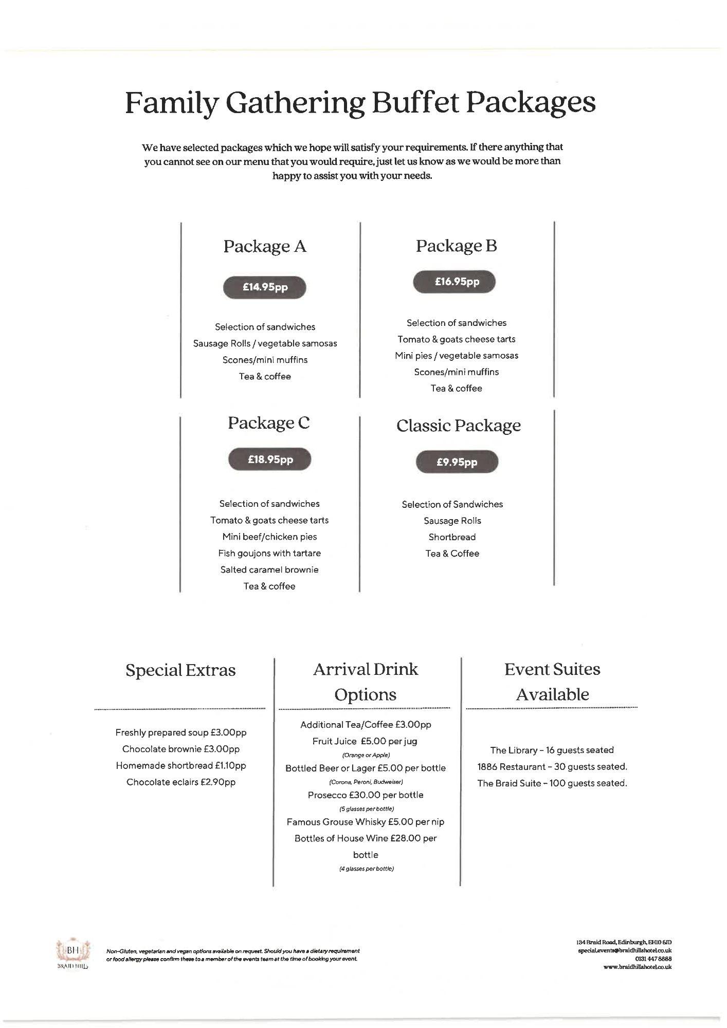 Available for Weddings, Birthdays, Anniversary Parties, Christenings, Funerals, Private Lunches, Private Dinners, Meetings. |