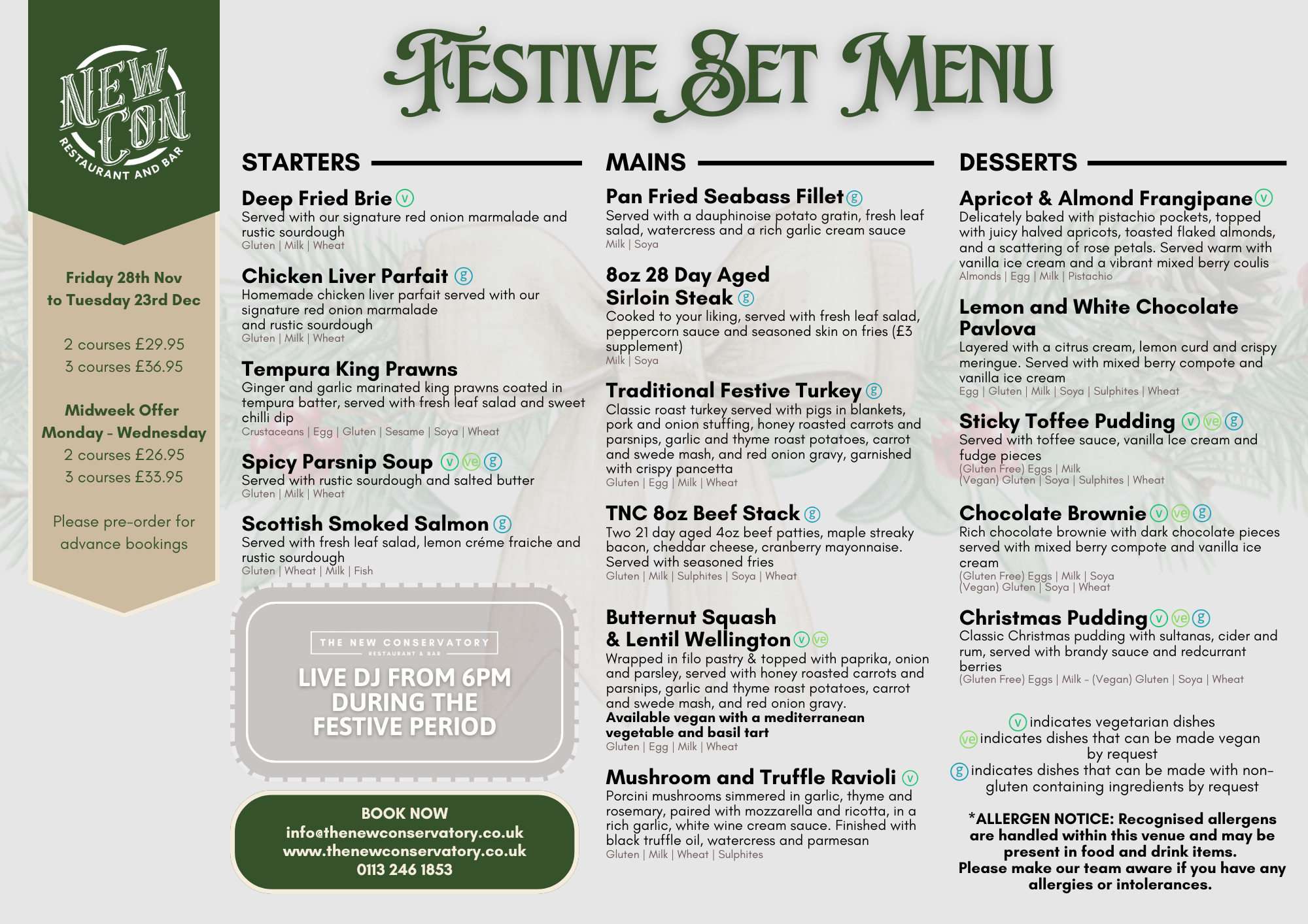 One of Leeds' most enduring and historic beloved pubs, The New Conservatory has a long and illustrious history. Their kitchen offers food until 8pm on Monday through Saturday and until 6pm on Sundays. They are open daily from 12pm 'til late and are conveniently located on Albion Street, across from Toni and Guy, and next to the Trinity Shopping Centre, in the centre of Leeds.