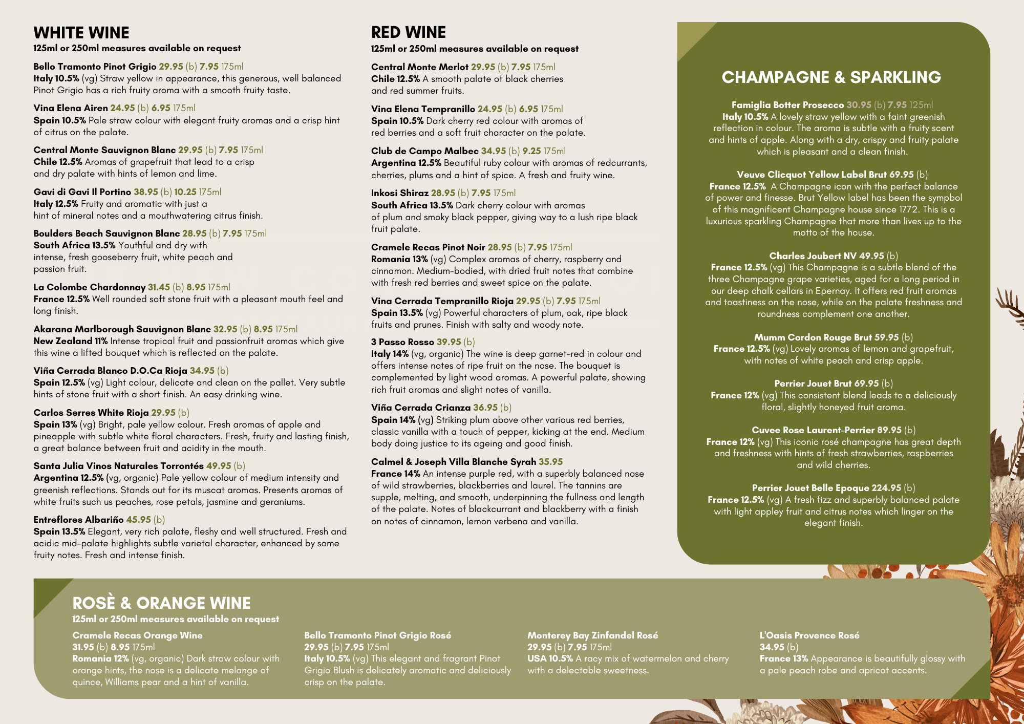 * The minimum spends are a guideline only and vary according to the day and time of the year.