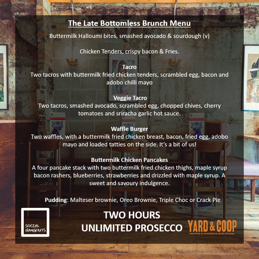 Whether you've missed brunch, are having a social gathering or are getting ready for a long day of Saturday day drinking in Leeds The Late Bottomless Brunch is just where you need to be.