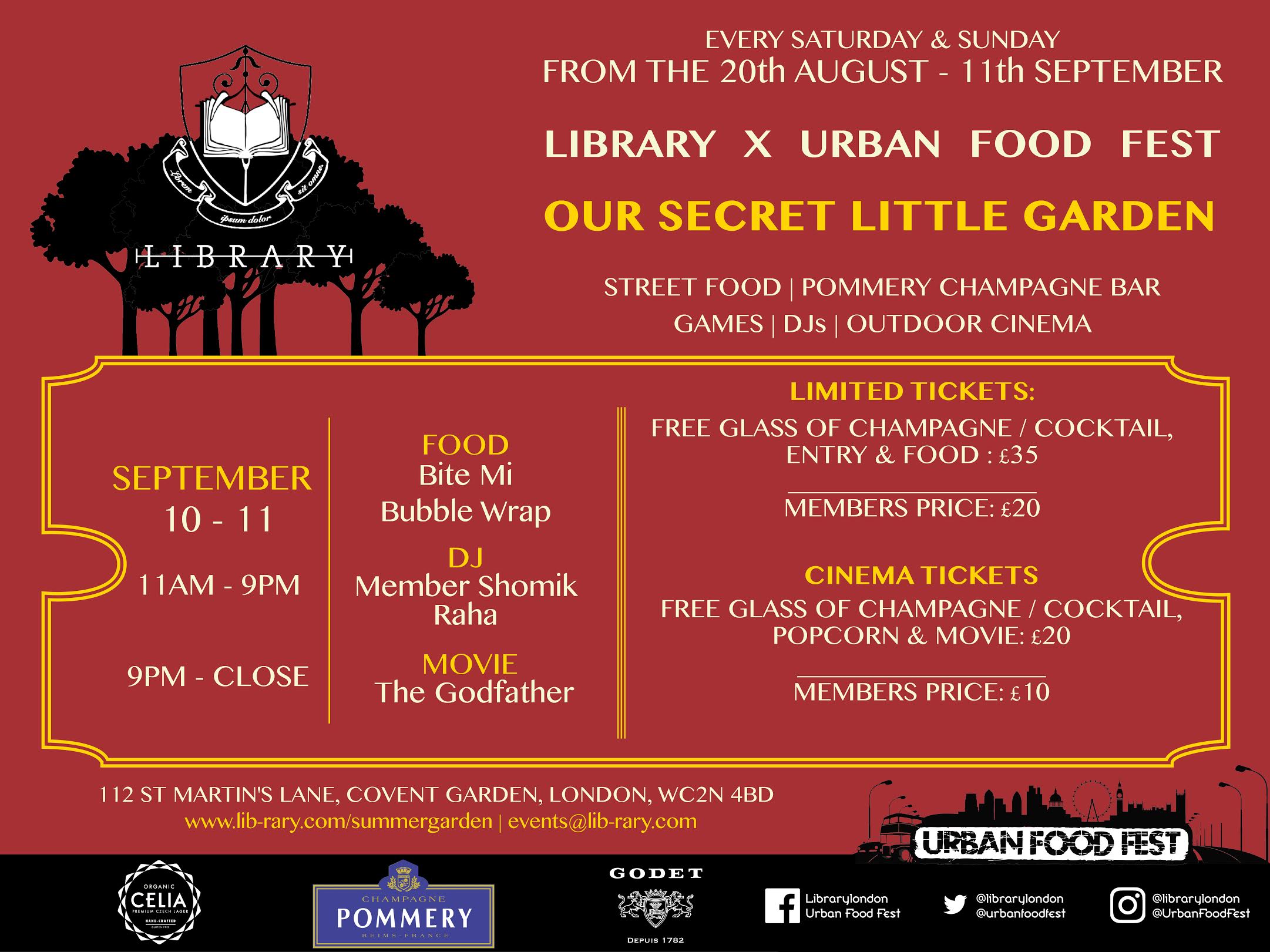 We are delighted to invite you to our Secret Little Garden, where you can escape the city in the middle of the city and enjoy great food, music and an open air cinema!