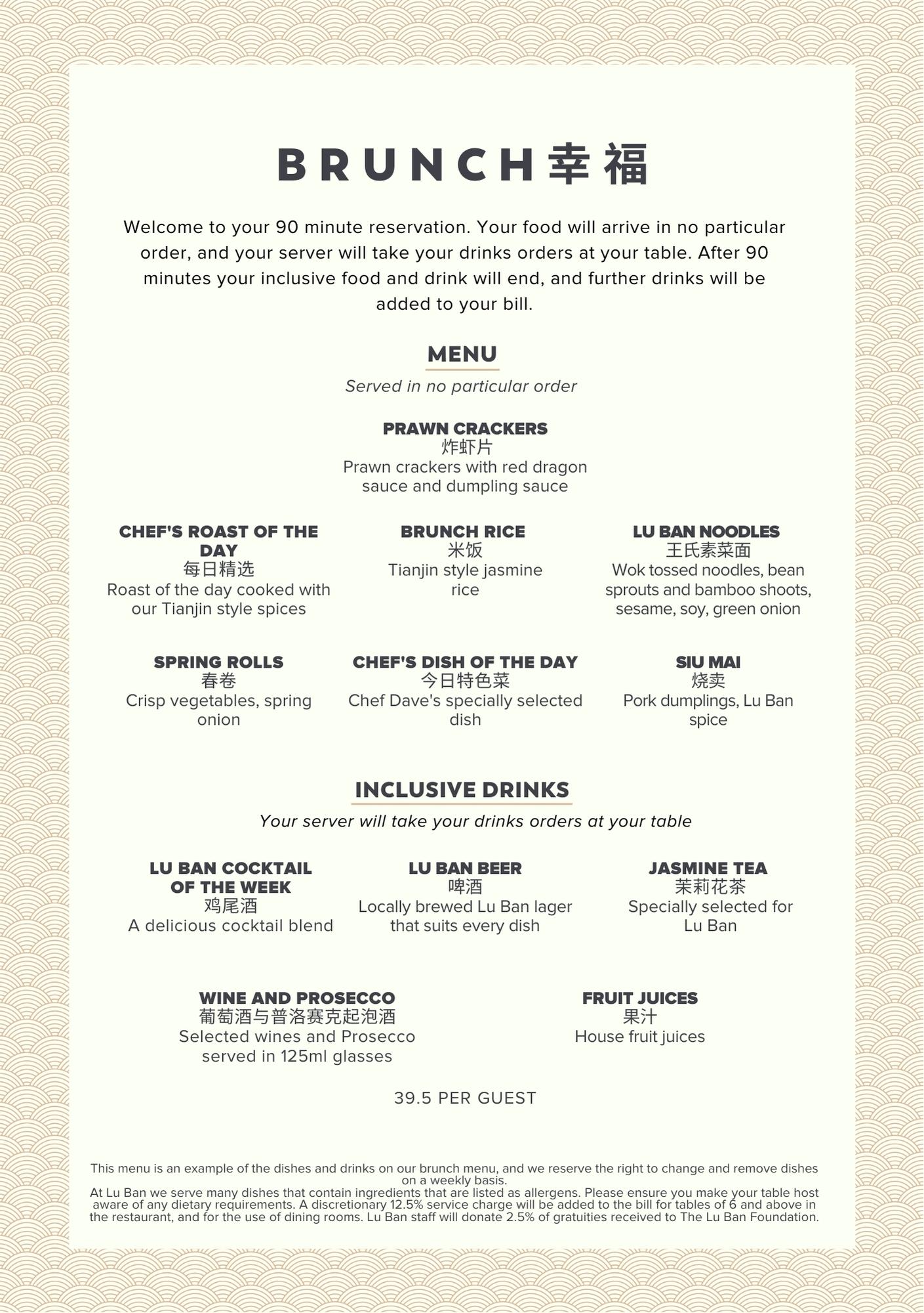 Delicious Chinese food is served to you in waves over the course of 90 minutes, and bottomless drinks include free-flowing Prosecco, selected wines, beer, soft drinks, and a special cocktail of the week!