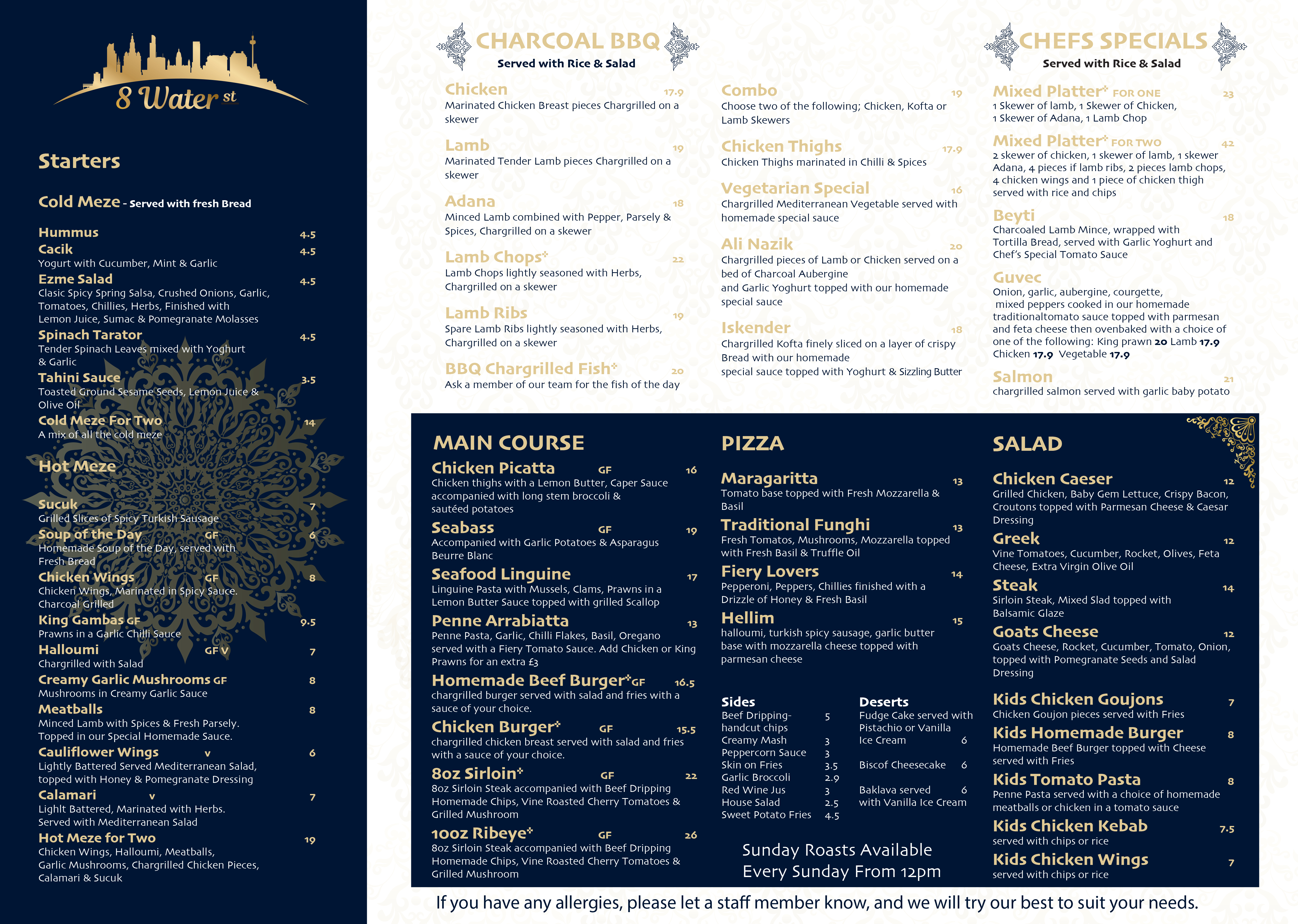 Whether you’re settling in for a long lunch, heading in for late‑night bites or clinking glasses over a 2‑for‑1 cocktail deal, 8 Water Street offers an inviting mix of good food, great energy and a stylish, social setting. Think relaxed dining with a touch of occasion – the kind of place you'd happily call a new favourite after your first visit.