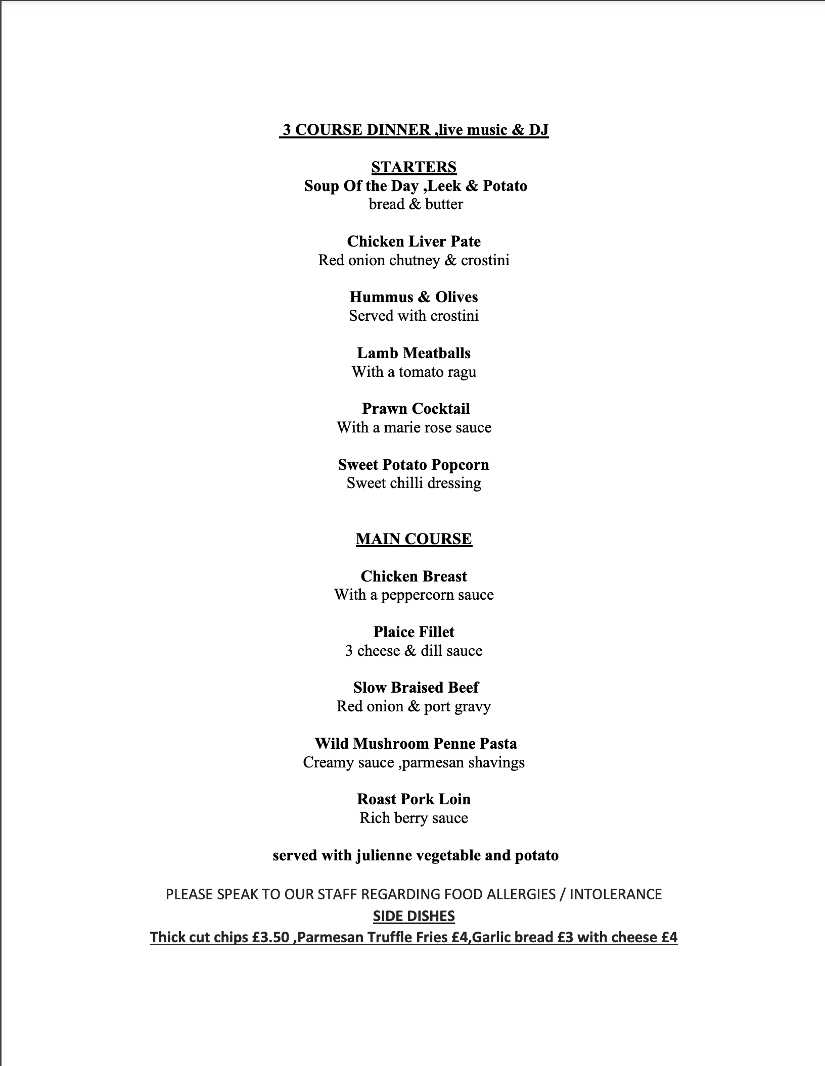 🍇 2 Course Meals available 🍇