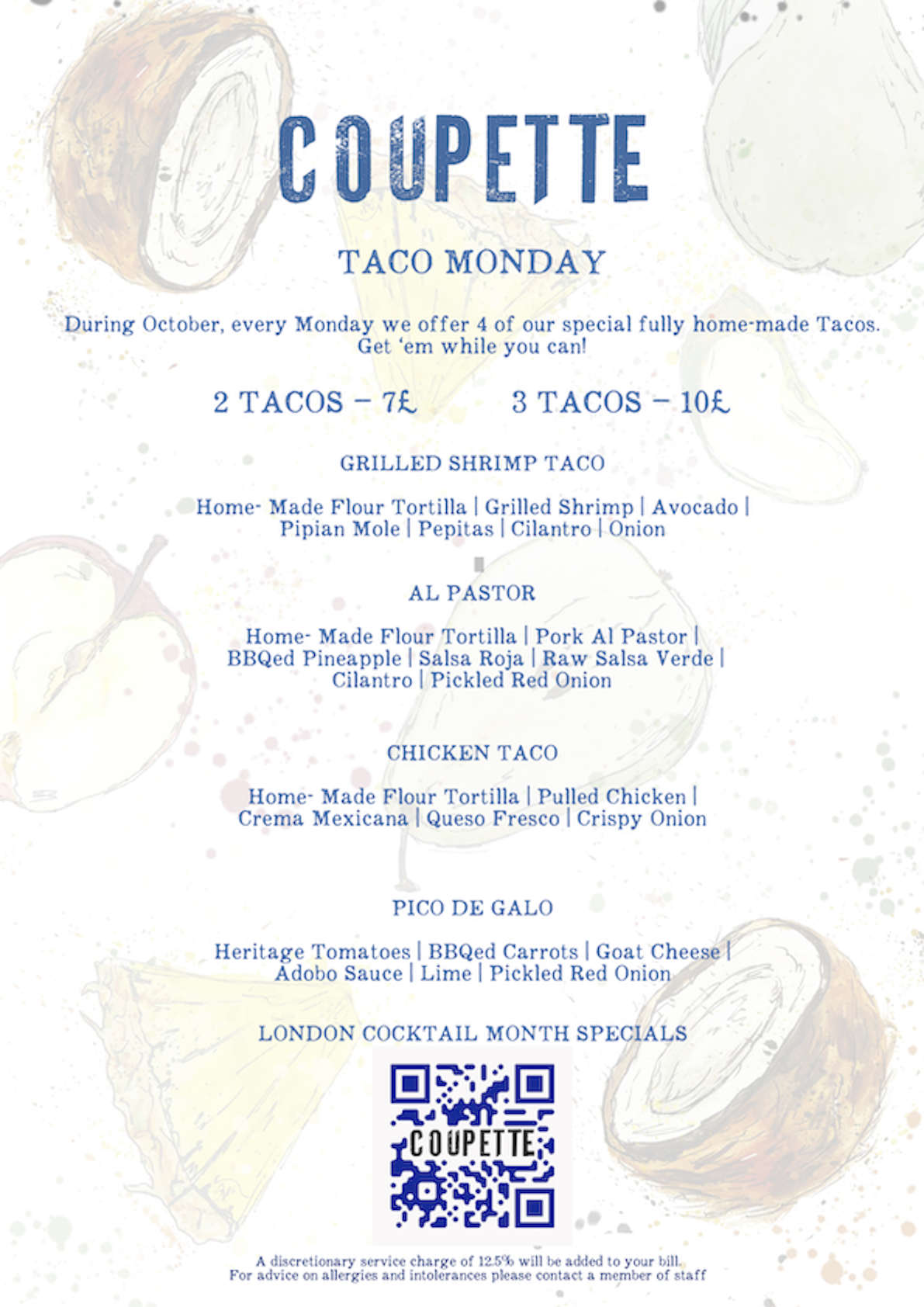 As part of London Cocktail month we bring you a special Taco Menu every Monday throughout October.
