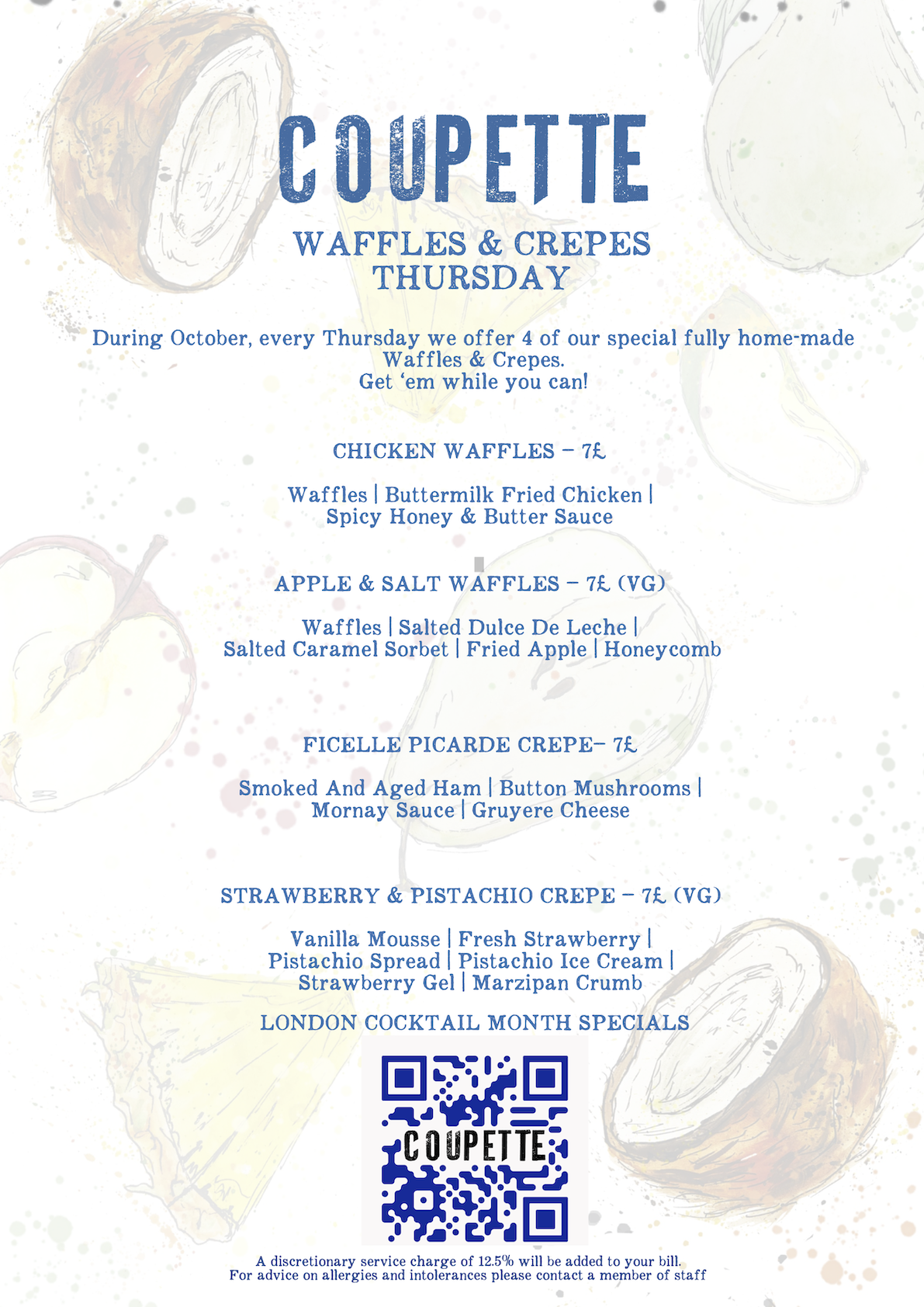 AS PART OF LONDON COCKTAIL MONTH,WE BRING YOU A SPECIAL WAFFLE & CREPE MENU EVERY TUESDAY THROUGHOUT OCOTBER.