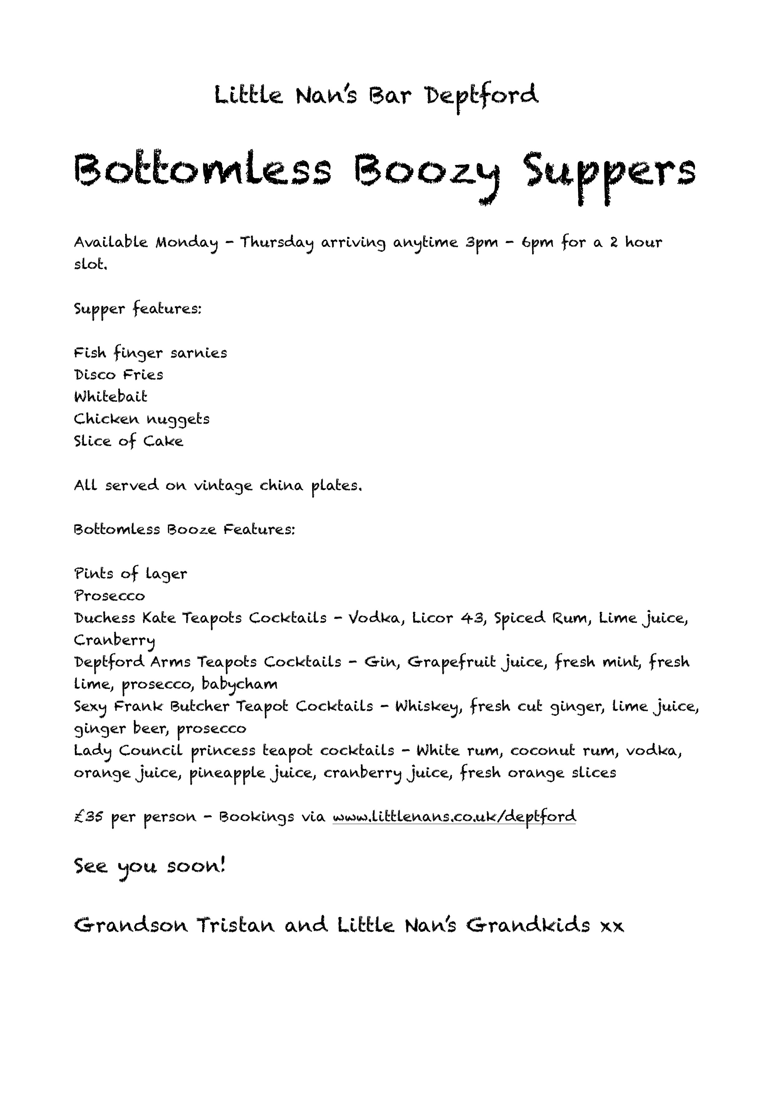 These Gift Vouchers can be redeemed at our Catford and Deptford venues for drinks, food or any of our awesome award winning get-togethers!  The recipient will just need to email us on bookings@littlenans.co.uk and we shall make the magic happen!