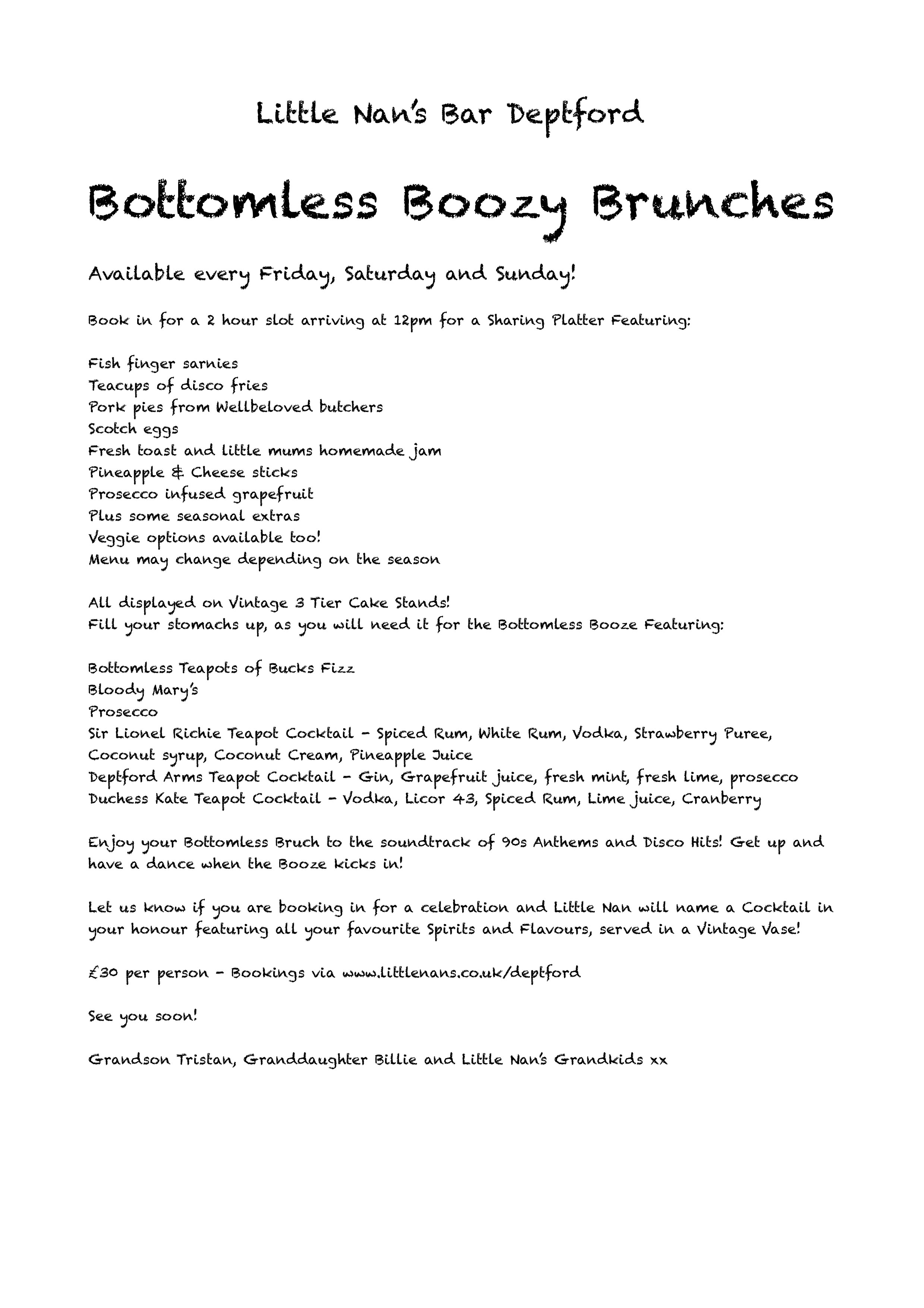 Little Nan's Deptford Valentines Bottomless Boozy Brunches