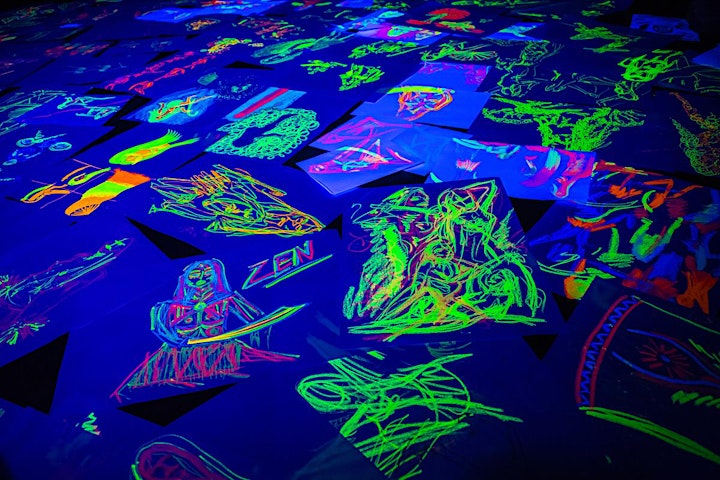 As described in TimeOut Magazine as 'It might look like a Full Moon party, but this evening of sketching is an experiment in light, colour, and texture. The models become ‘living sculptures’ covered in UV lights and reactive body paints. Trippy.'