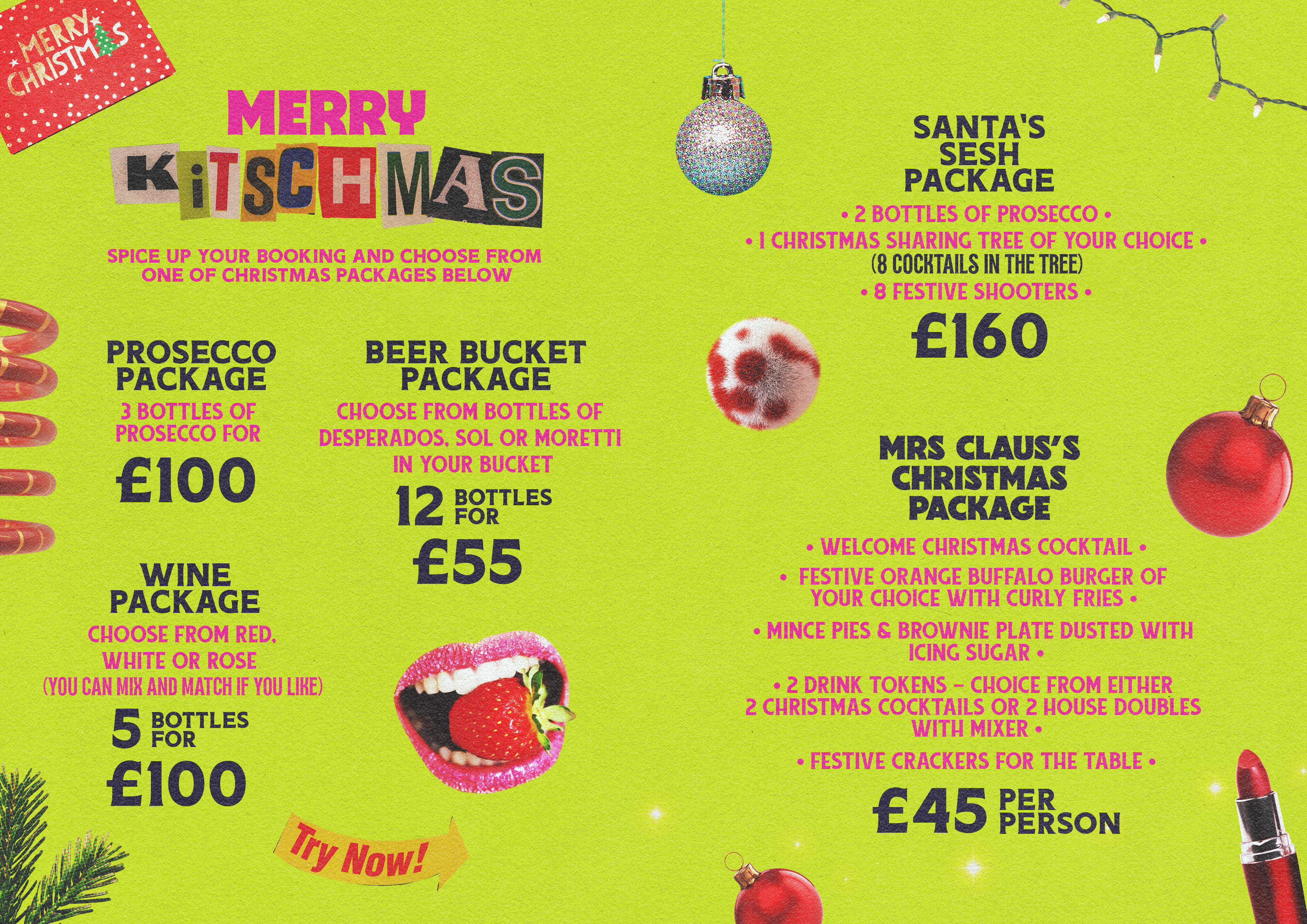 Get ya jingle balls out your naughty lot, cause Santa is coming early this year hehehe. And there's gunna be funkier festive packages, mouthwateringly good Christmas cocktails and juicer nosh than ever before. Introducing... Merry Kitschmas!! 🎉