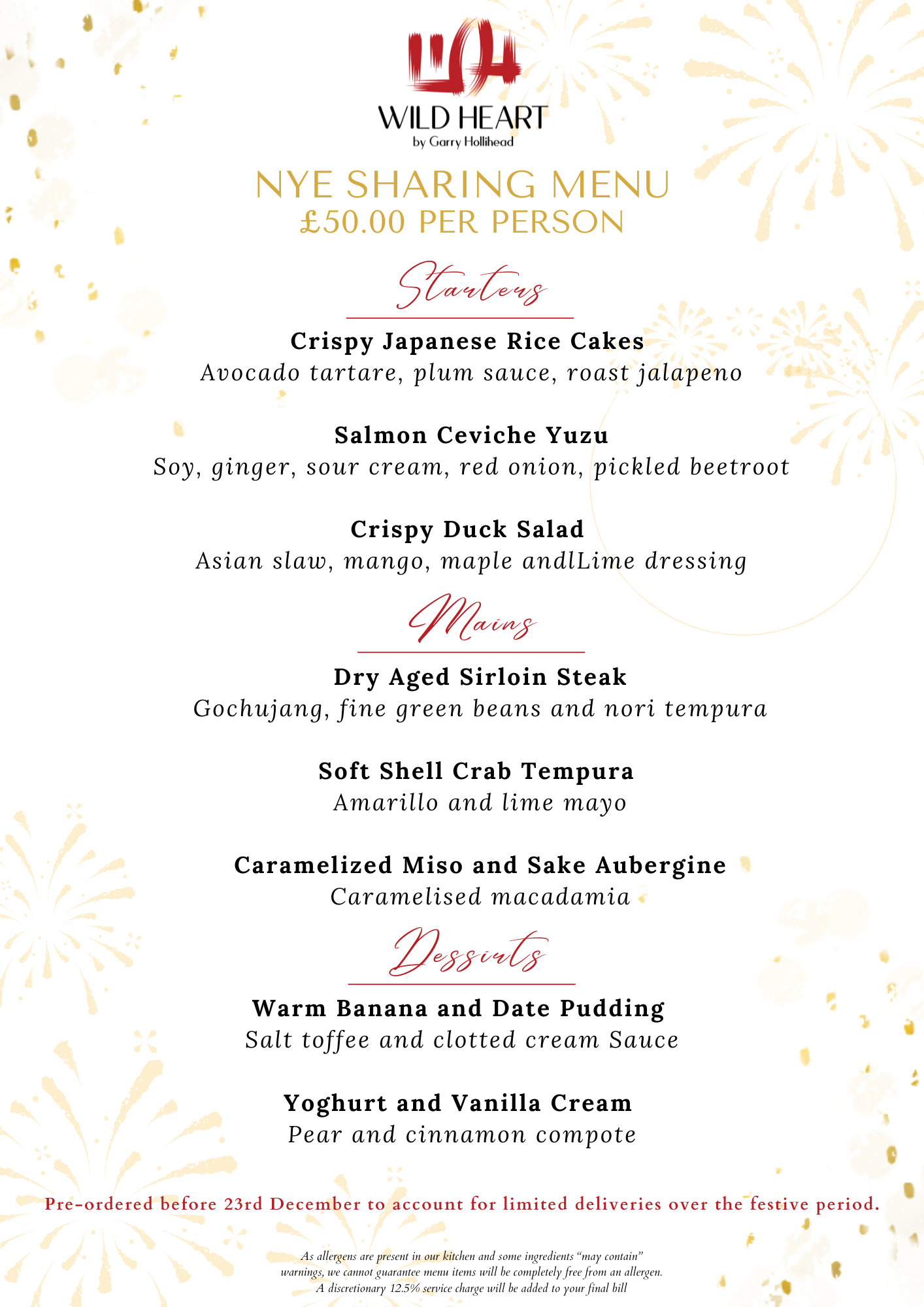 | 3-Course Sharing Menu | £65 pp | 3-Course NYE Sharing Dinner |