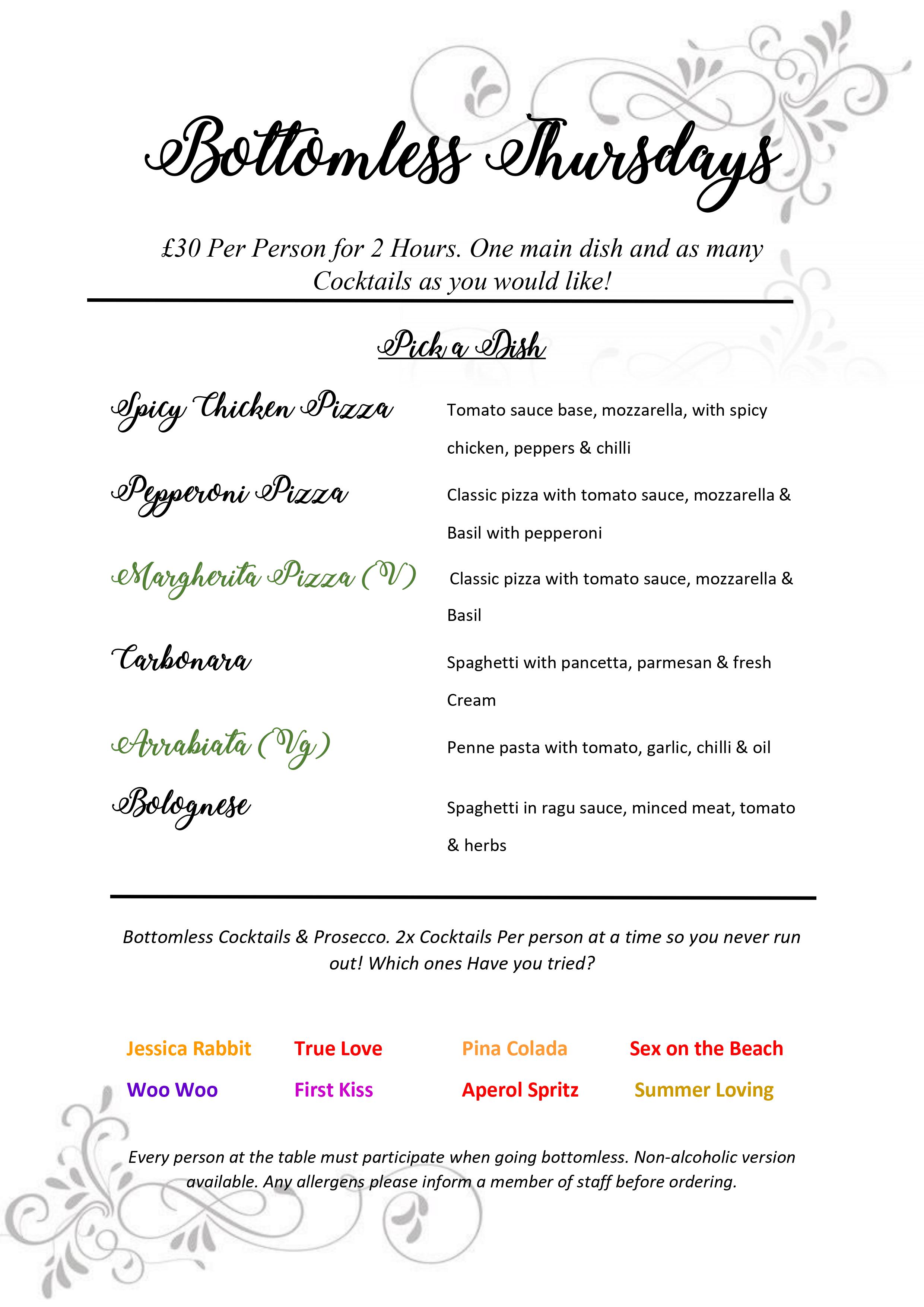 Cocktail Offers available if you do not wish to go bottomless
