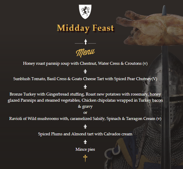 For Christmas 2017, celebrate with us and feast on The Medieval Banquet's court entertainment as they mystify you with their talents then raise your charged goblet in appreciation. But whatever you do, ensure you are in the right house, as there will be no mercy on those found to be deserting their coat of arms.