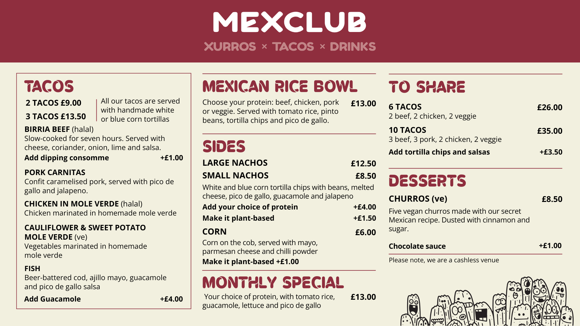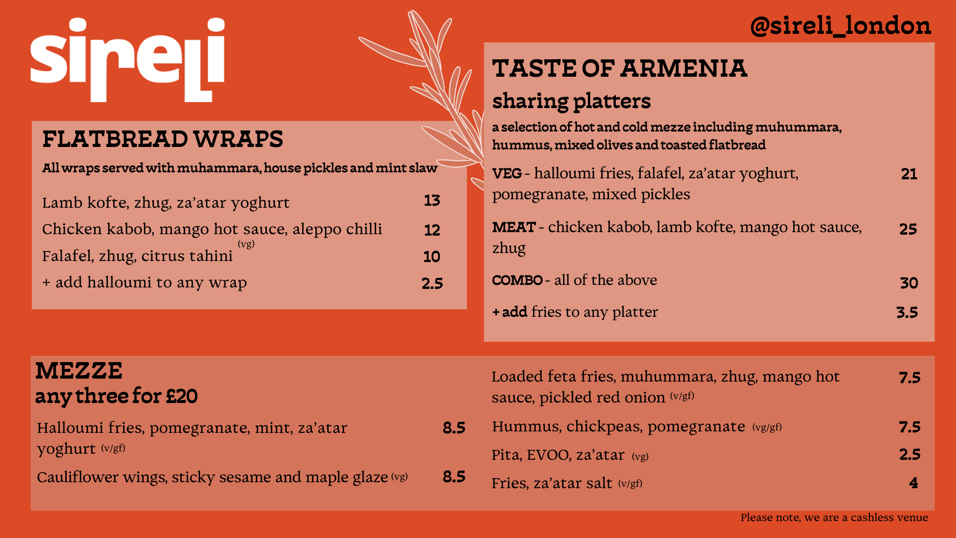 | Early Bird | 19:00 - 21:00 | £27.50 |
