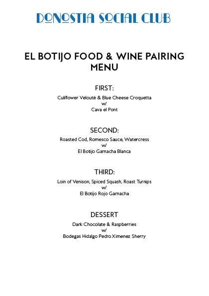 Food & Wine Pairing Evening with Donostia Social Club & El Botijo Wines
