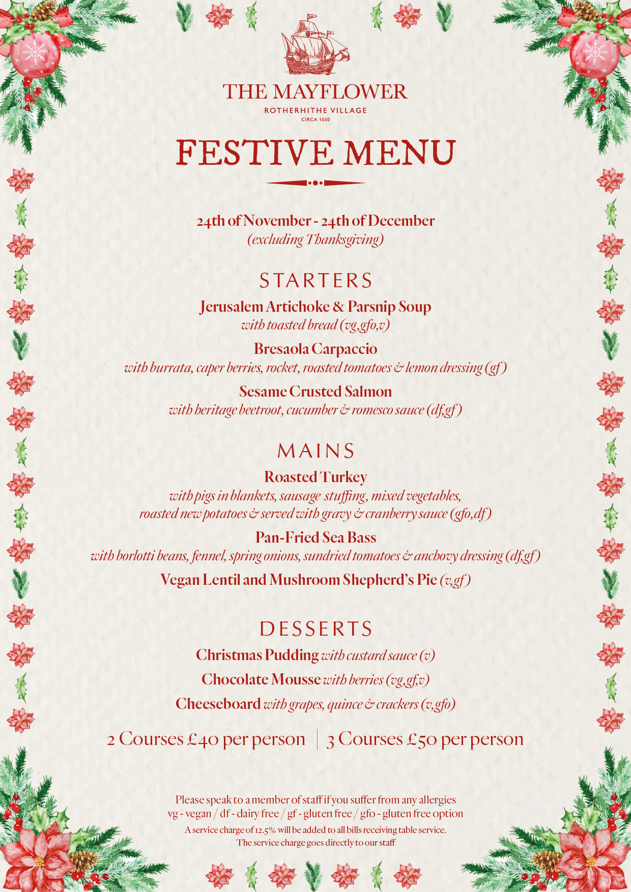 - Saturday: £2500 + 12.5% service charge (available for lunch or dinner)