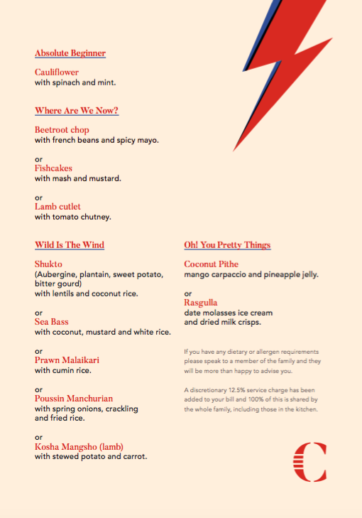 For Calcutta Street Brixton’s first NYE, we’ll be paying tribute to local legend David Bowie’s golden years. Expect plenty of stardust, dishes as colourful as Bowie and an after party he himself would’ve doffed his cap to.