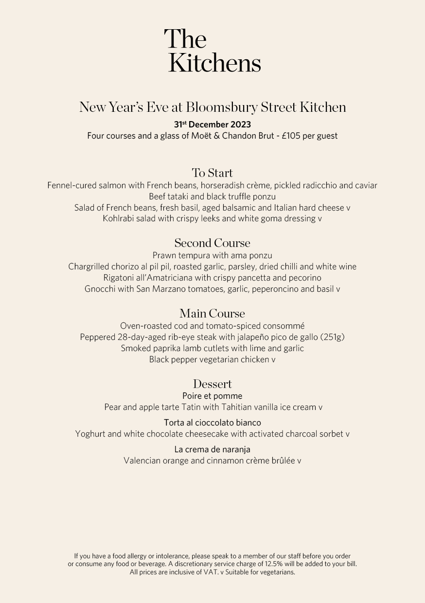 End 2024 with us in Bloomsbury and enjoy a decadent four-course menu, accompanied by a glass of Moët & Chandon Brut to cheers the new year.