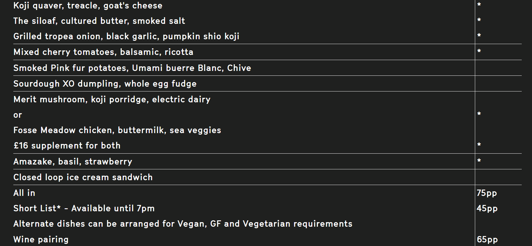 Silo’s menu is a constantly evolving showcase of modern, low-waste cuisine. Expect inventive dishes built around seasonal British ingredients, many of which are fermented, preserved, or foraged. Their in-house milled flour becomes the signature 'siloaf' bread, which even reappears in dessert form. Drinks are equally thoughtful - ferments, natural wines, and cocktails designed to complement rather than overpower the food.