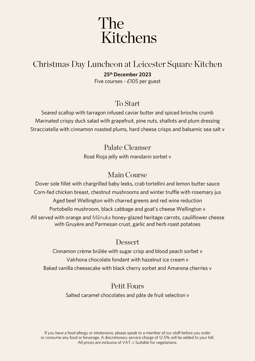 Spend the most magical day of the year in the heart of the West End, with an exquisite five-course dining experience featuring Kitchens favourites. Expect festive classics with a twist, including aged beef Wellington and scrumptious desserts.