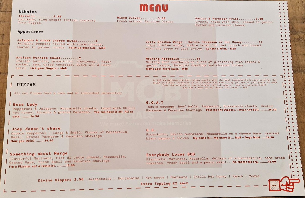 MOB Pizza Socials, MOB Pizza Socials, 42-44 Kingsland Rd, E2 8DA