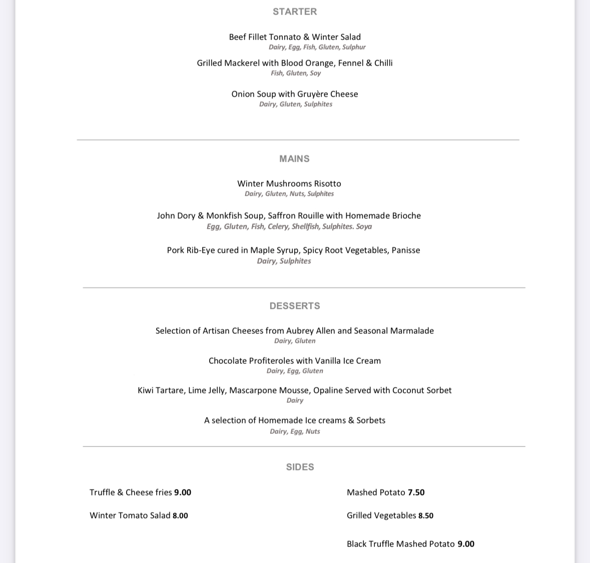 3 course menu plus bottomless Prosecco or house wine |