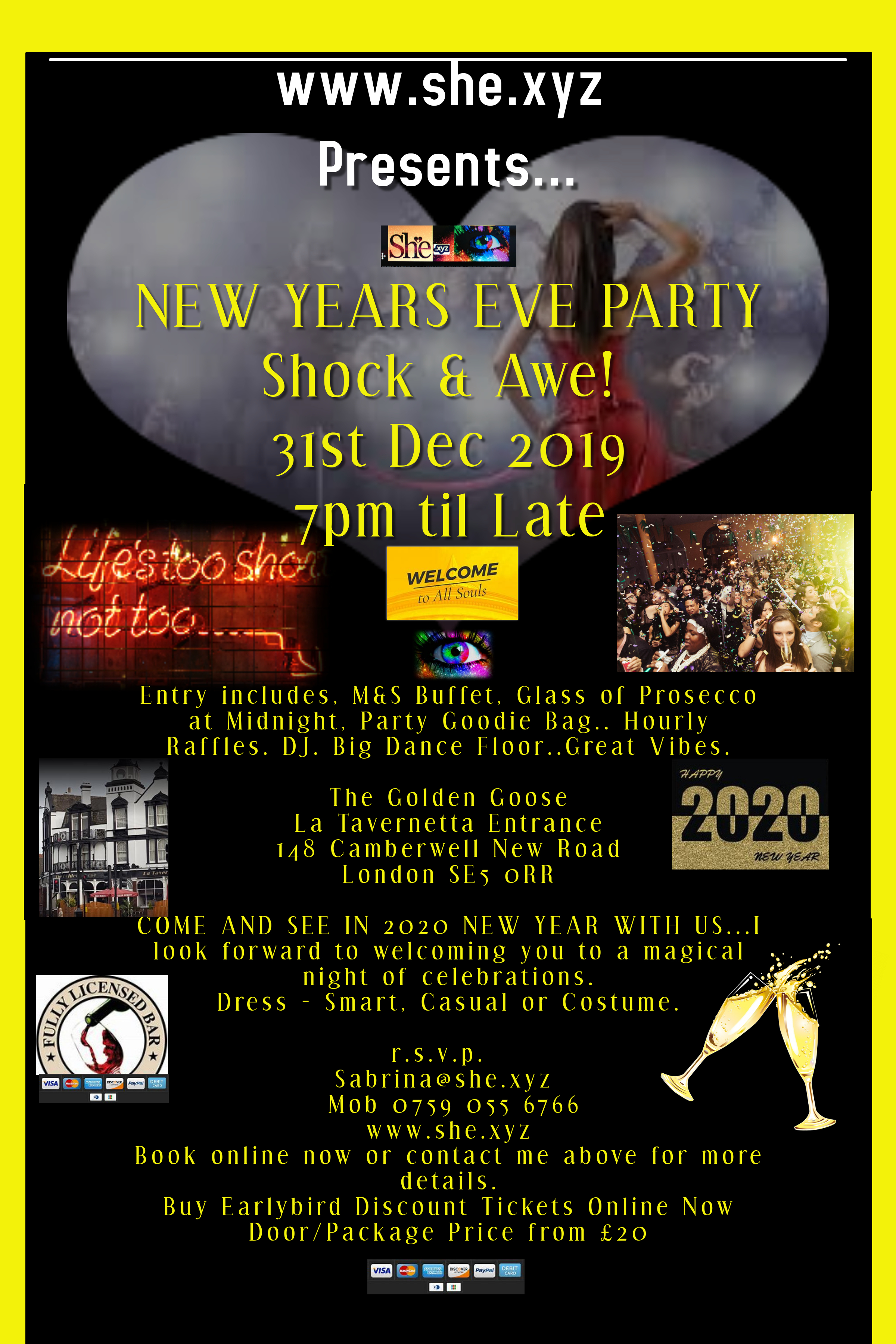 Entry includes M&S Buffet, Glass of Prosecco at midnight,, Party Goodie Bag, Hourly Drinks Raffles, Big Dance Floor, Great Vibes.