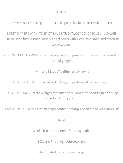 Calling all rum connoisseurs, rum enthusiasts or pirate wannabes: our food and rum tasting experience is one of a kind. Rhum Agricole is one of the rarest rums in the world and the Beachcomber is the Rhum Agricole specialist bar in London with over 150 different types of rums behind the bar and a large focus on rum from the French islands and Vanessa Bolosier, author of Creole Kitchen concocted just the food pairing menu to complement it!