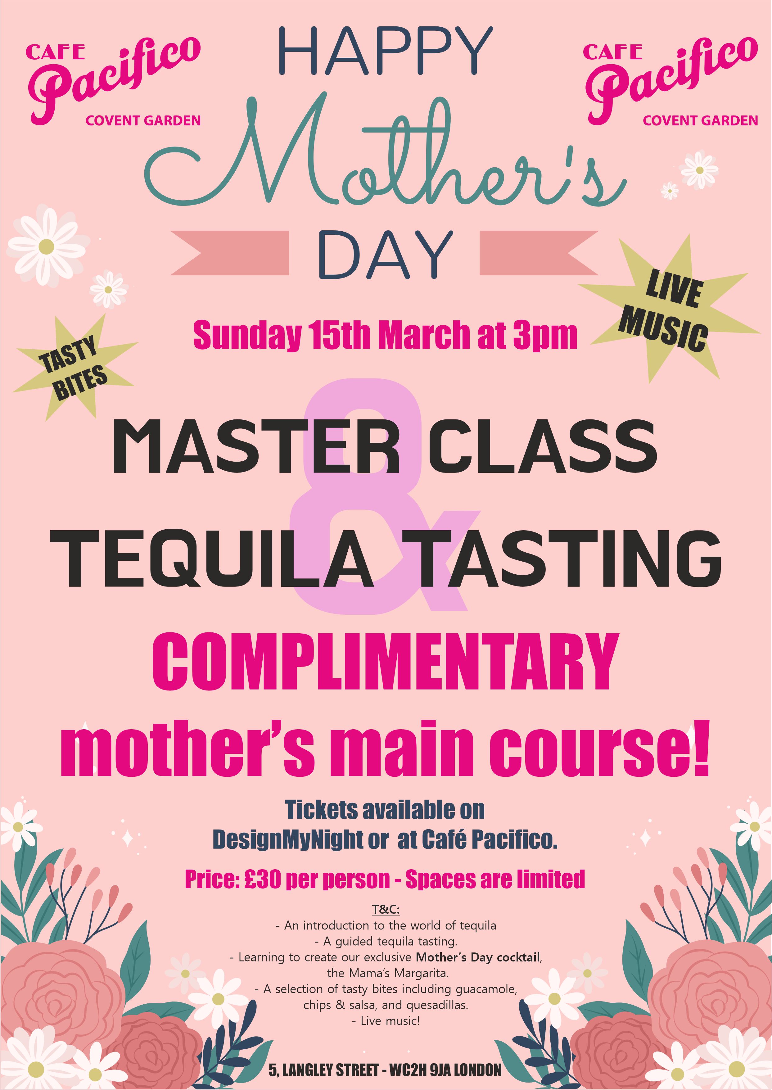 If you attend the Margarita Masterclass and book a table with us for lunch or dinner on the same day, Mum’s main course is on us.