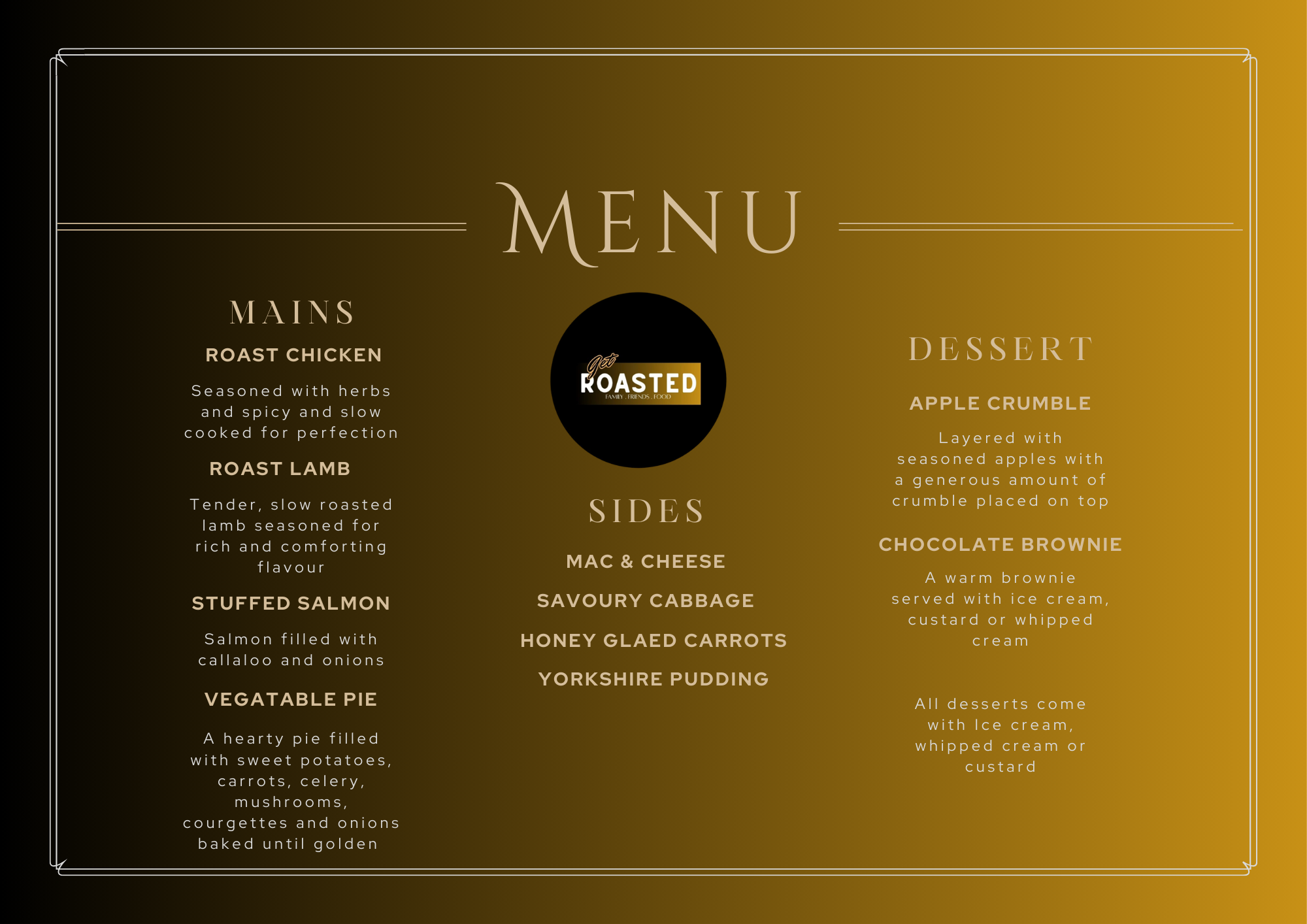 Enjoy a carefully curated roast menu featuring roast chicken,