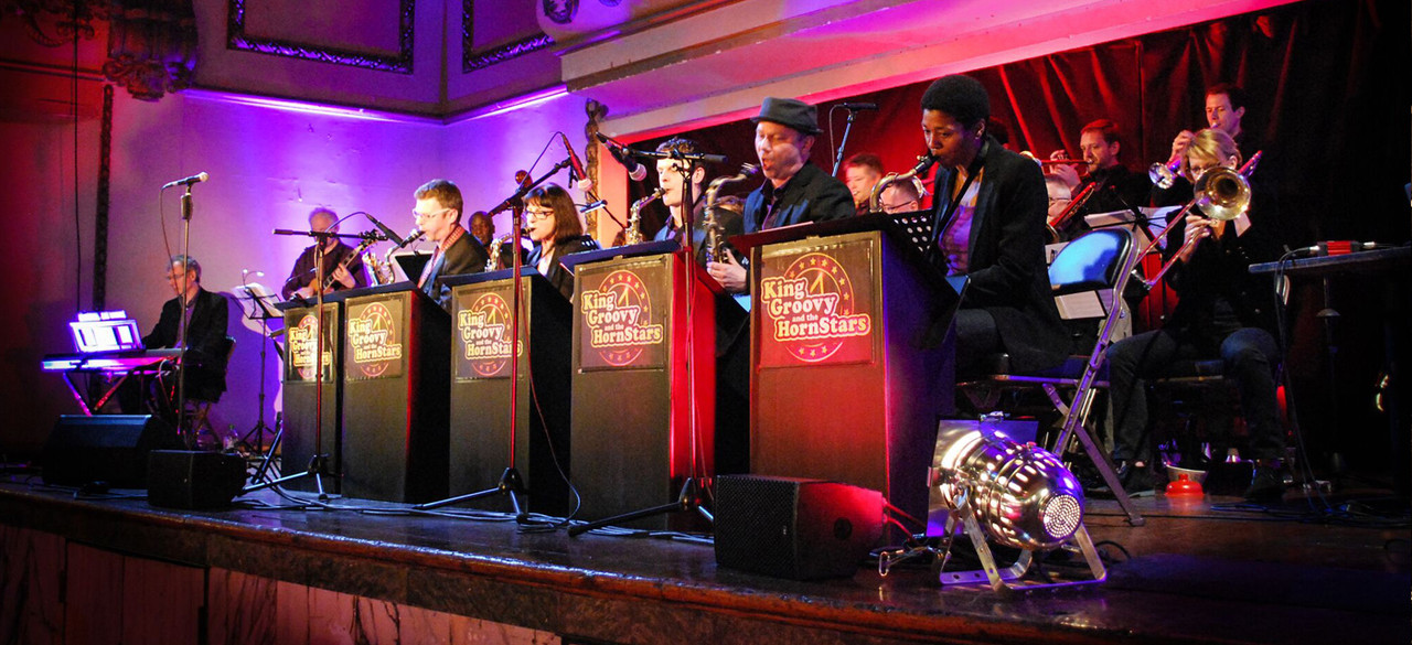 Under the musical direction of Paul Goodrum, King Groovy & the Horn Stars Big Band has been performing for over ten years. The band has performed all over London and the South East including at the Southbank Centre, Camden Round House, Hammersmith Apollo and Wilton's Music Hall. The band also regularly performs on the London jazz circuit.