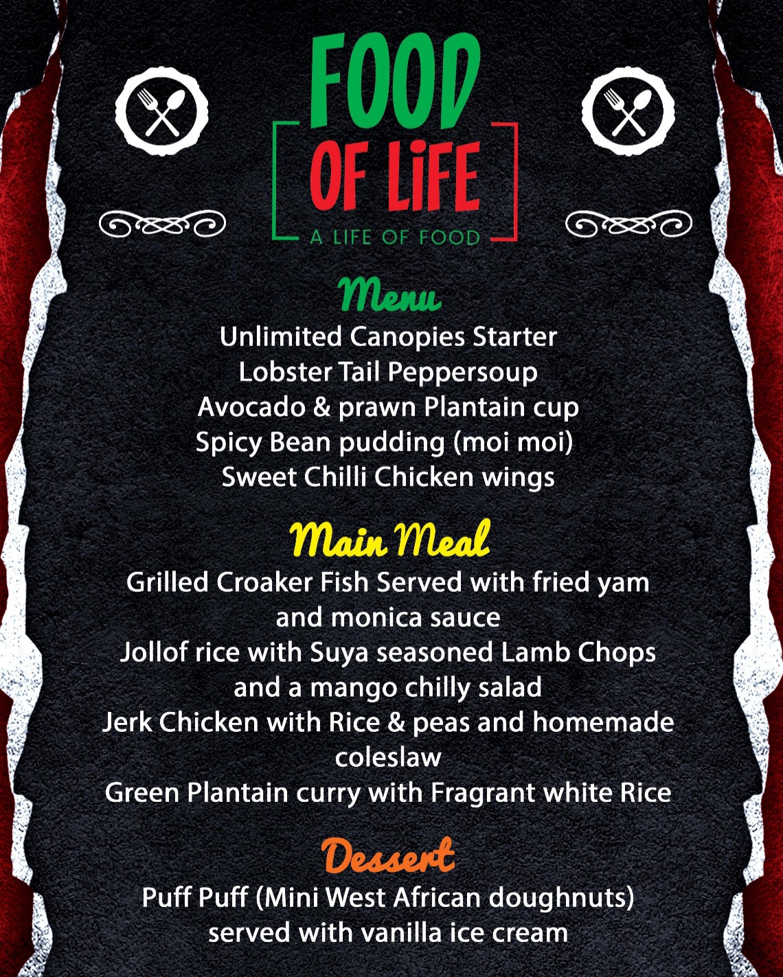 Come and feast on our mouth watering Afro-Caribbean menu while you enjoy live music and comedy!