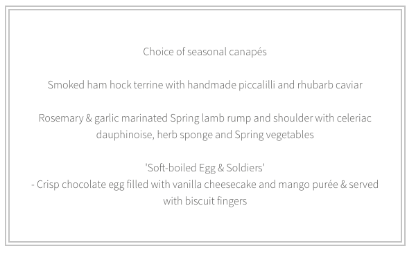 The March sessions finishes off with a big hello to spring with a vernal Easter theme by Mr Pigstuff, well known to Londoners pork enthusiast, who along with his team brings back to life the best English flavours with elegant modern touch, presentation and style.