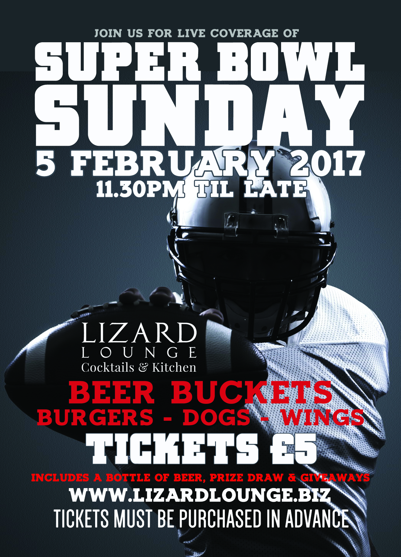 It's Superbowl Season and we will be hosting our annual Superbowl Party. Starting at 11pm we will be showing the game, serving food and beer buckets all night long. We have also got some games and prize give away.