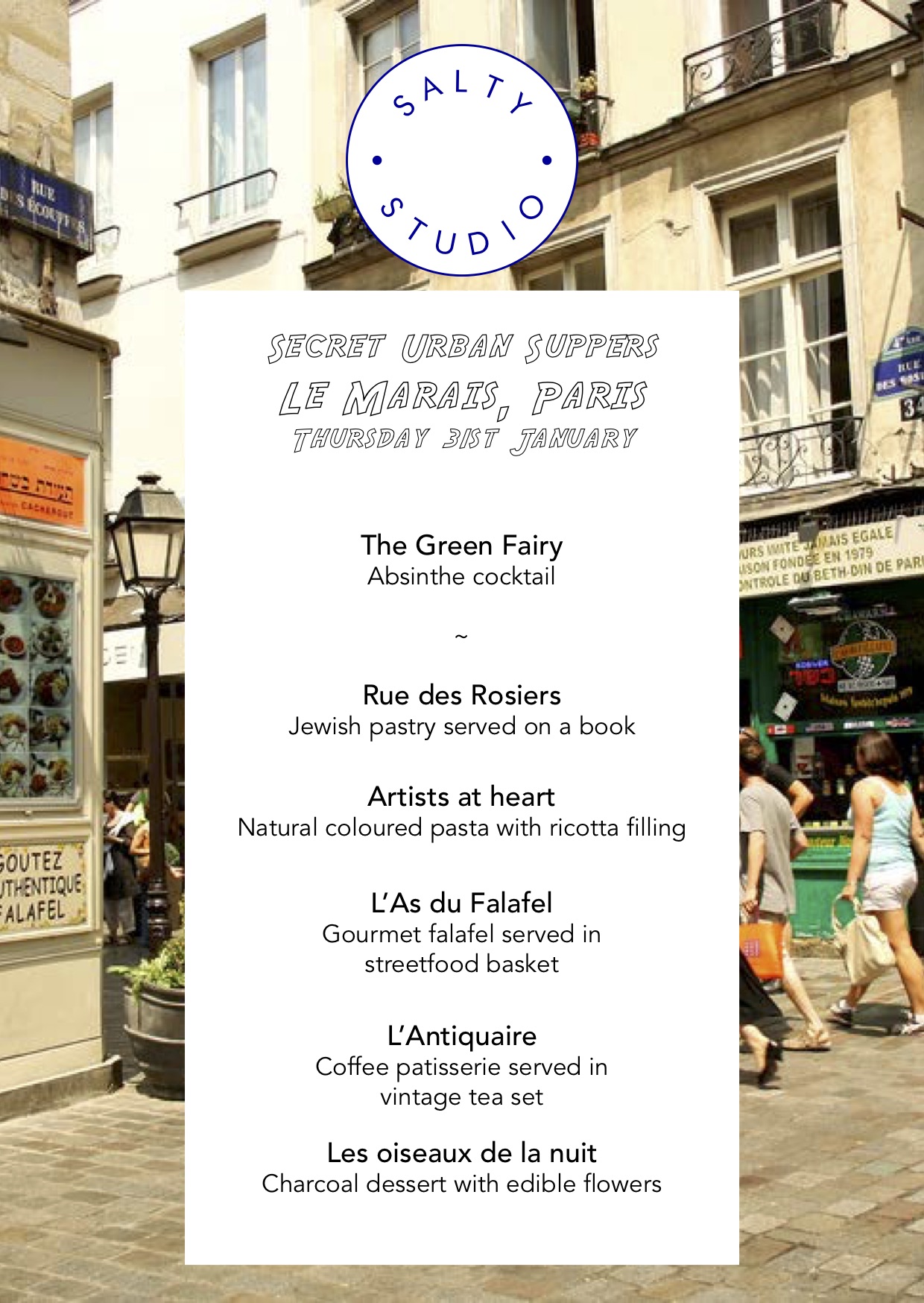 Salty Studio are excited to present you a new series of events this January: Secret Urban Suppers. Exploring the creative past and present of the most artistic districts in urban cities around the world, these supper clubs will tell the hidden stories of what used to happen in the lofts and warehouses of these neighbourhoods.