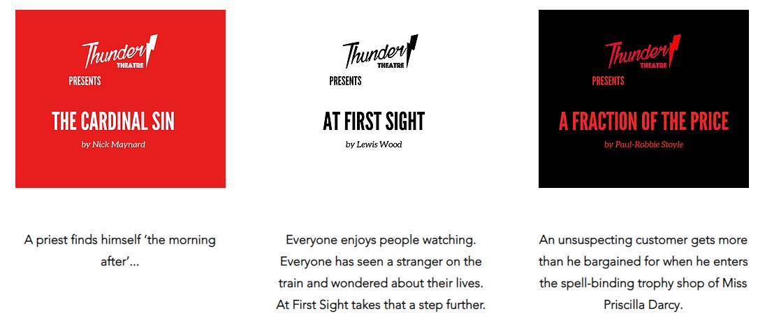 Welcome to THUNDER THEATRE - a series of short plays performed in rapid-fire succession in the round at Lost Boys Pizza. Space is intimate and lively as are the plays and performers, ticket includes half a pizza per person and a drink! Because good things, when short, are twice as good! Our plays are 15-20 minutes long each.