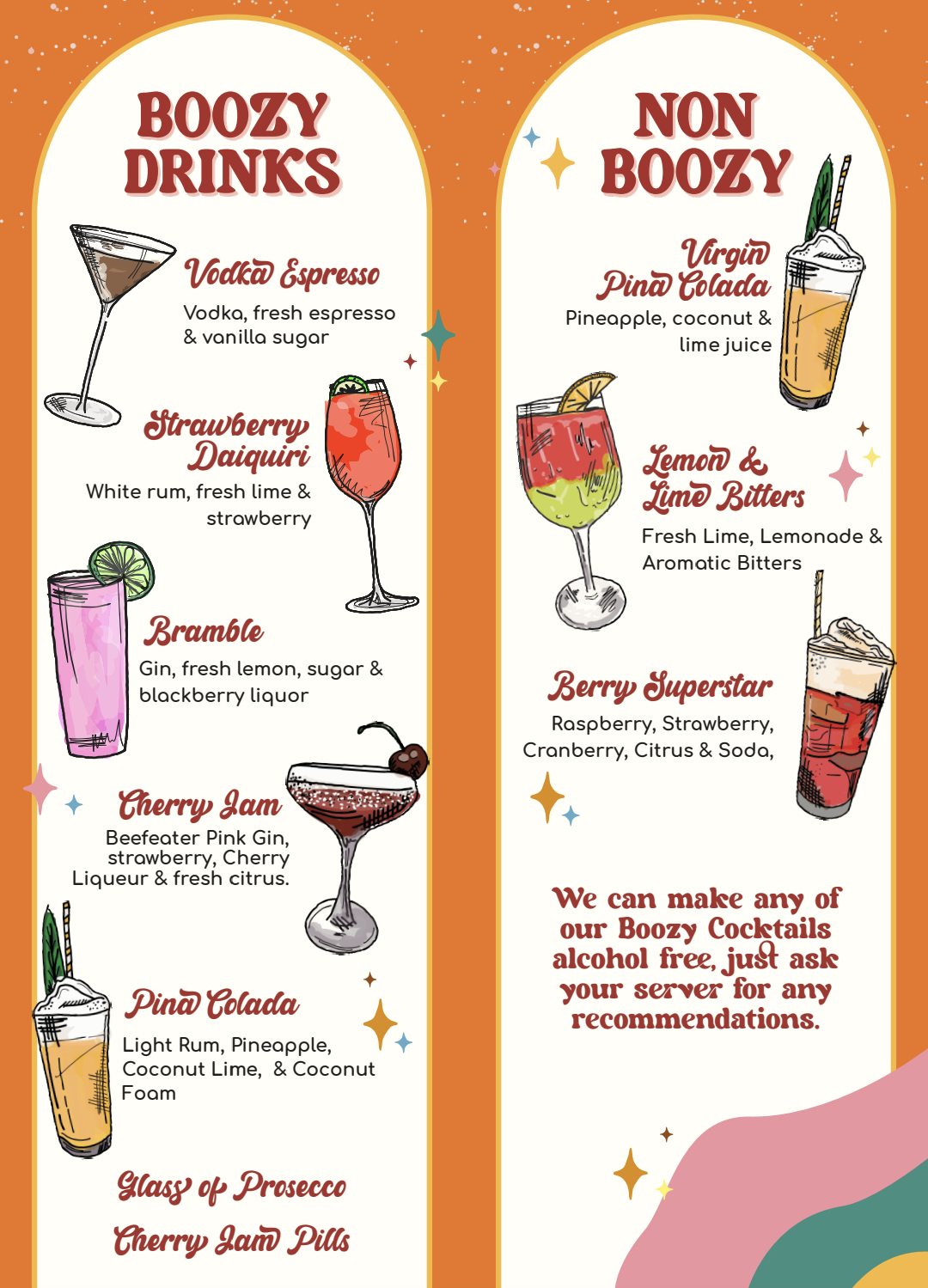 Charcuterie boards* with 90 minutes of bottomless NON boozy drinks. Followed by music bingo!! *Food comes as standard |