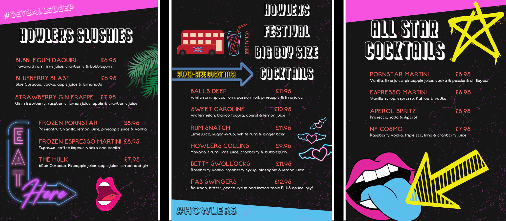 Looking to celebrate an occasion with a venue like no other? Howlers is the place! With live entertainment, festival size cocktails and the North Easts only adult ball pit it really is the best place to celebrate! Table and drinks packages are available, as well as area hire and full venue hire. Speak to a member of our sales team for more information - 0191 2357065 |