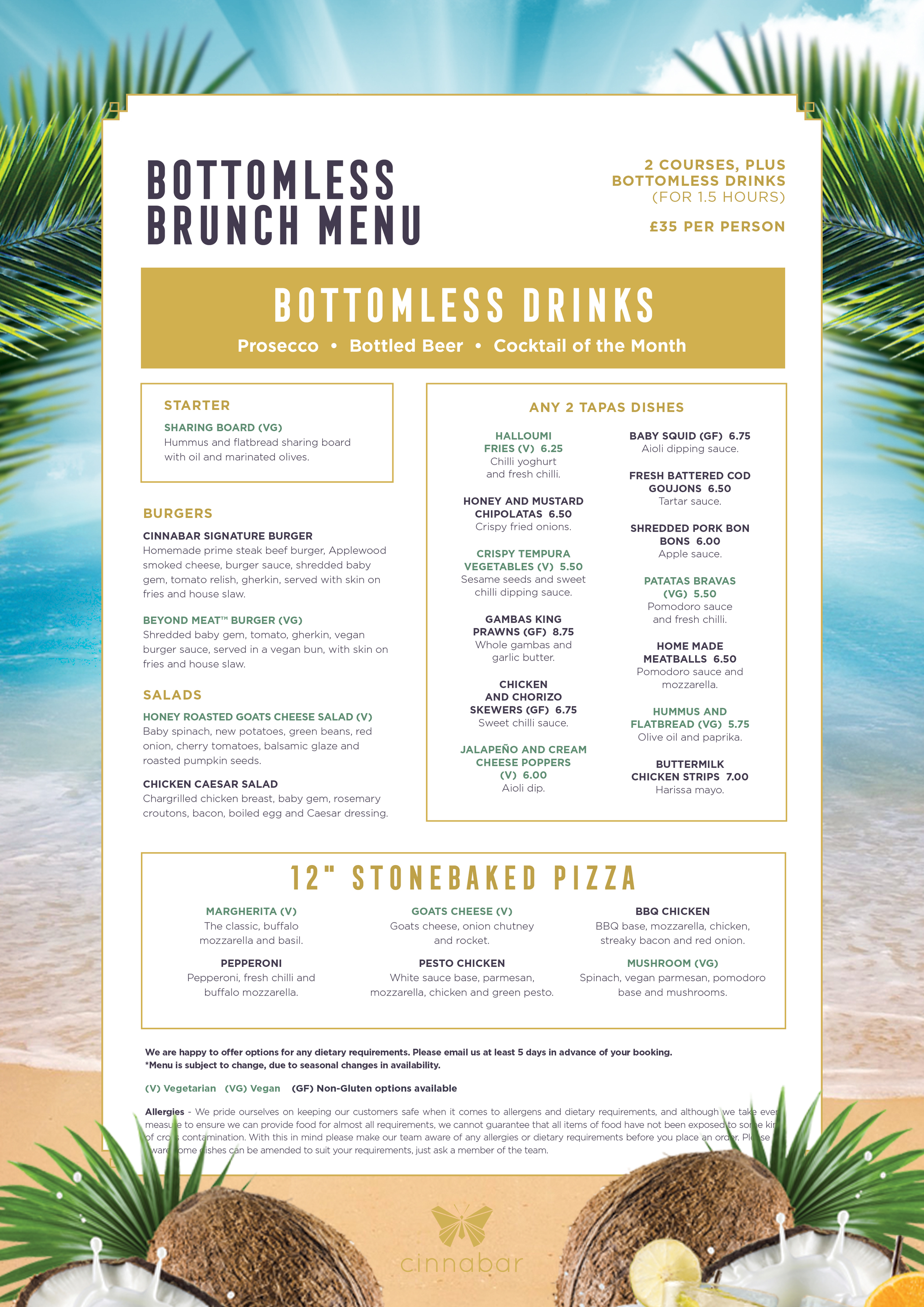 2 courses & Bottomless Prosecco, Beers & Cocktails + unlimited happy hour with live DJ performance. |