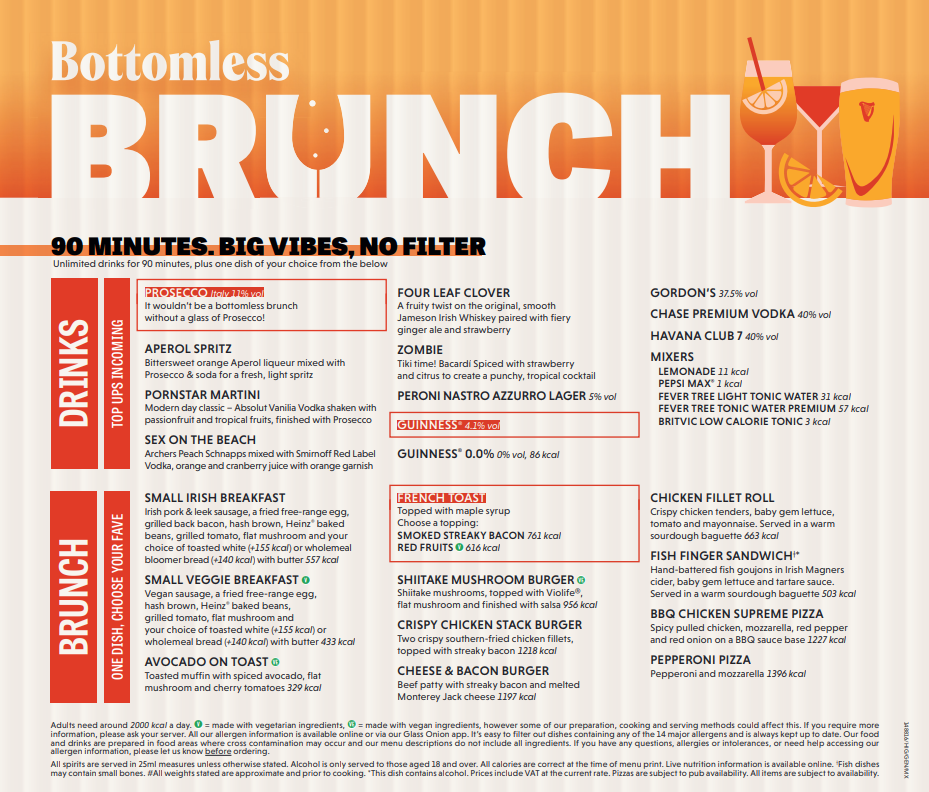 Sunday 24th August 2025, start time 12:30 to 2:30pm 90 minute Brunch |