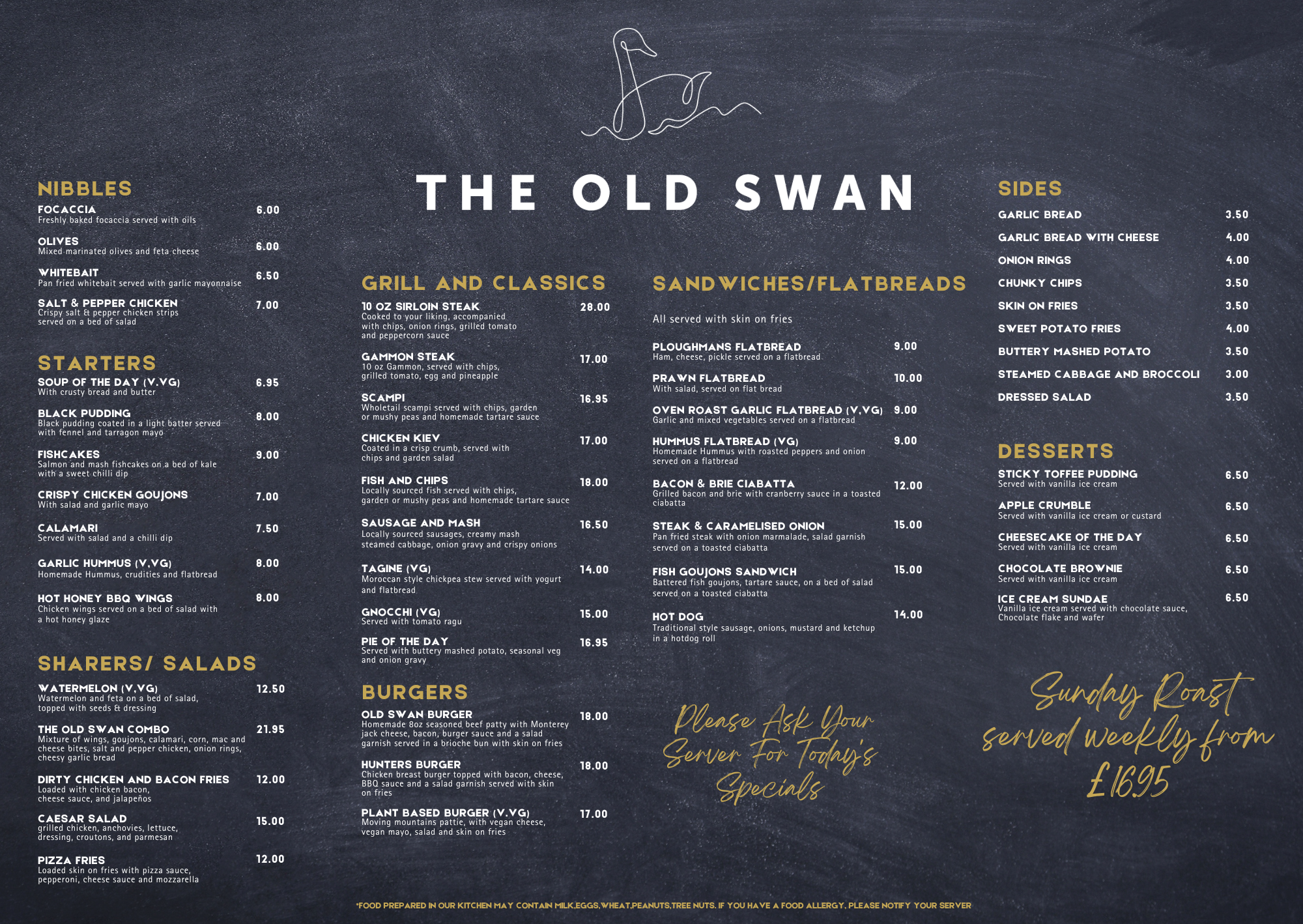 The Old Swan is a traditional village pub in Gargrave, just outside Skipton. It offers a classic Yorkshire pub feel with a bar area, dining space and outdoor seating. The pub serves a range of cask ales, lagers, wines and spirits alongside a food menu featuring pub favourites and seasonal dishes.