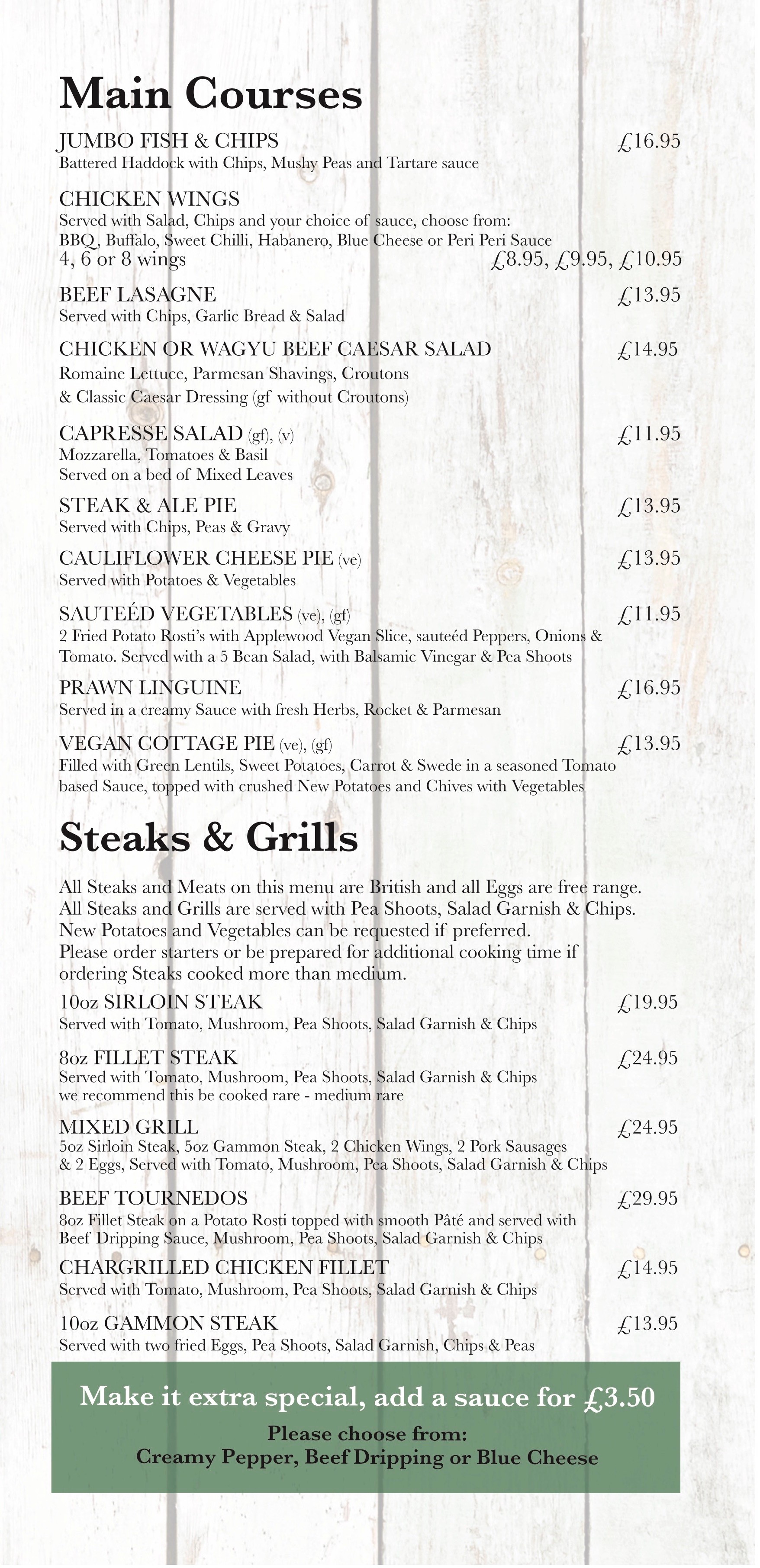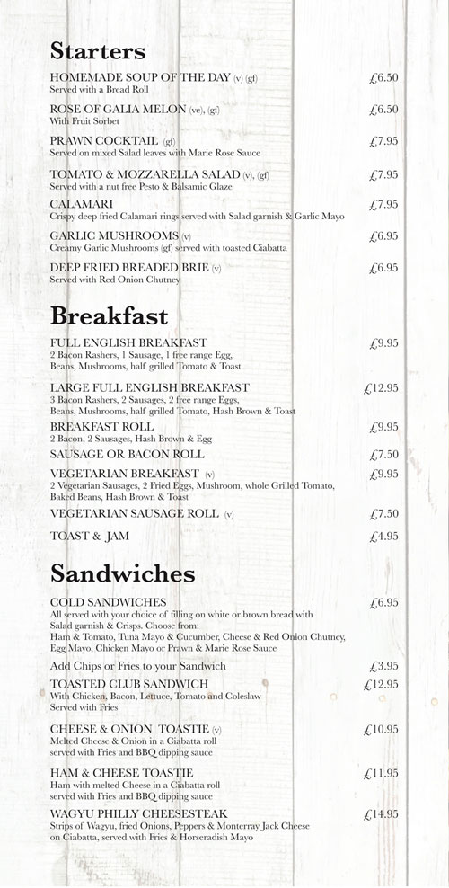 The Restaurant seats 200 people, it is open to the public and they serve classic British pub meals, Fish & Chips, Steaks and burgers at affordable prices, or you can sit in the outdoor Bistro, on the Patio or on the Lawns overlooking the lake.