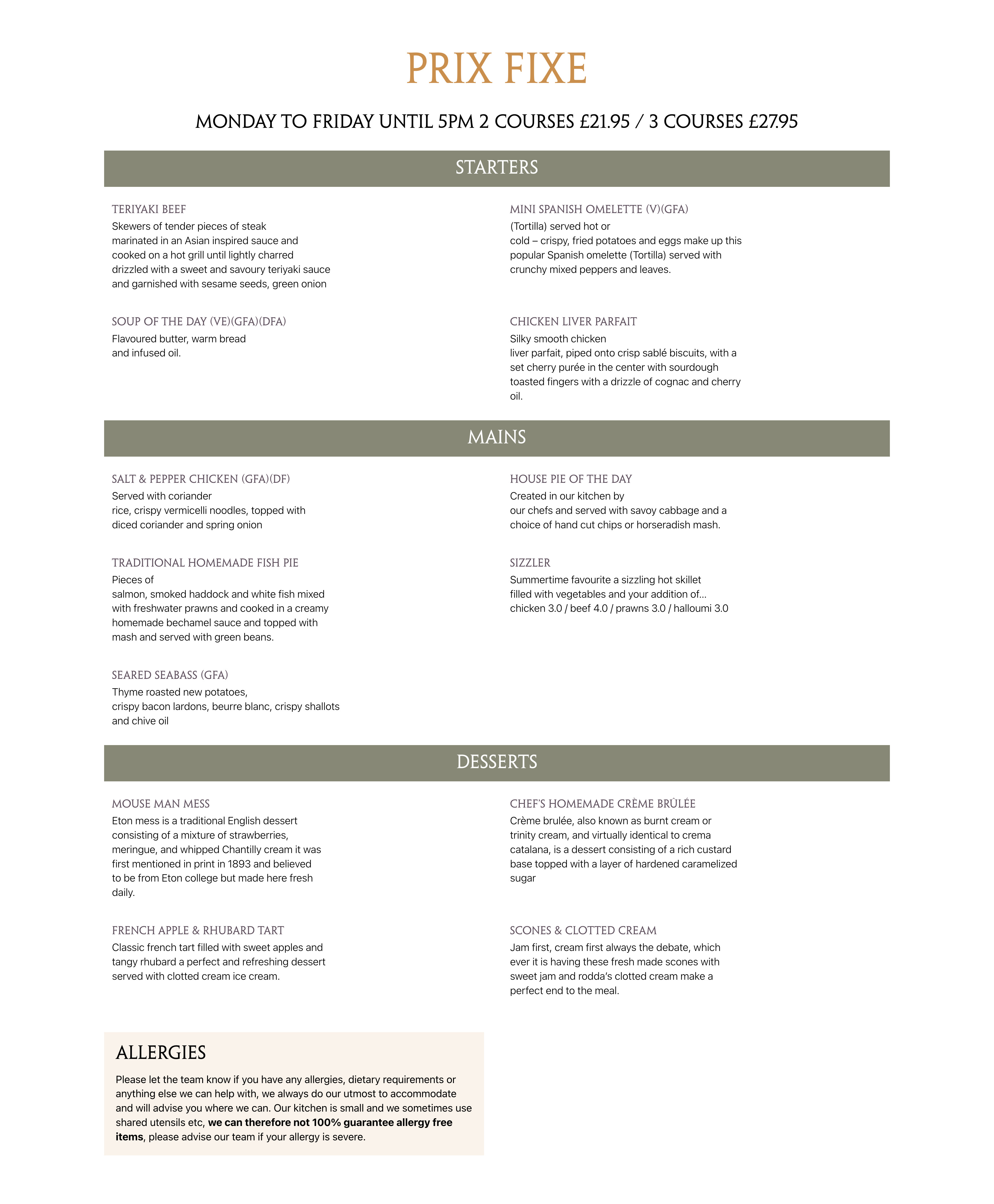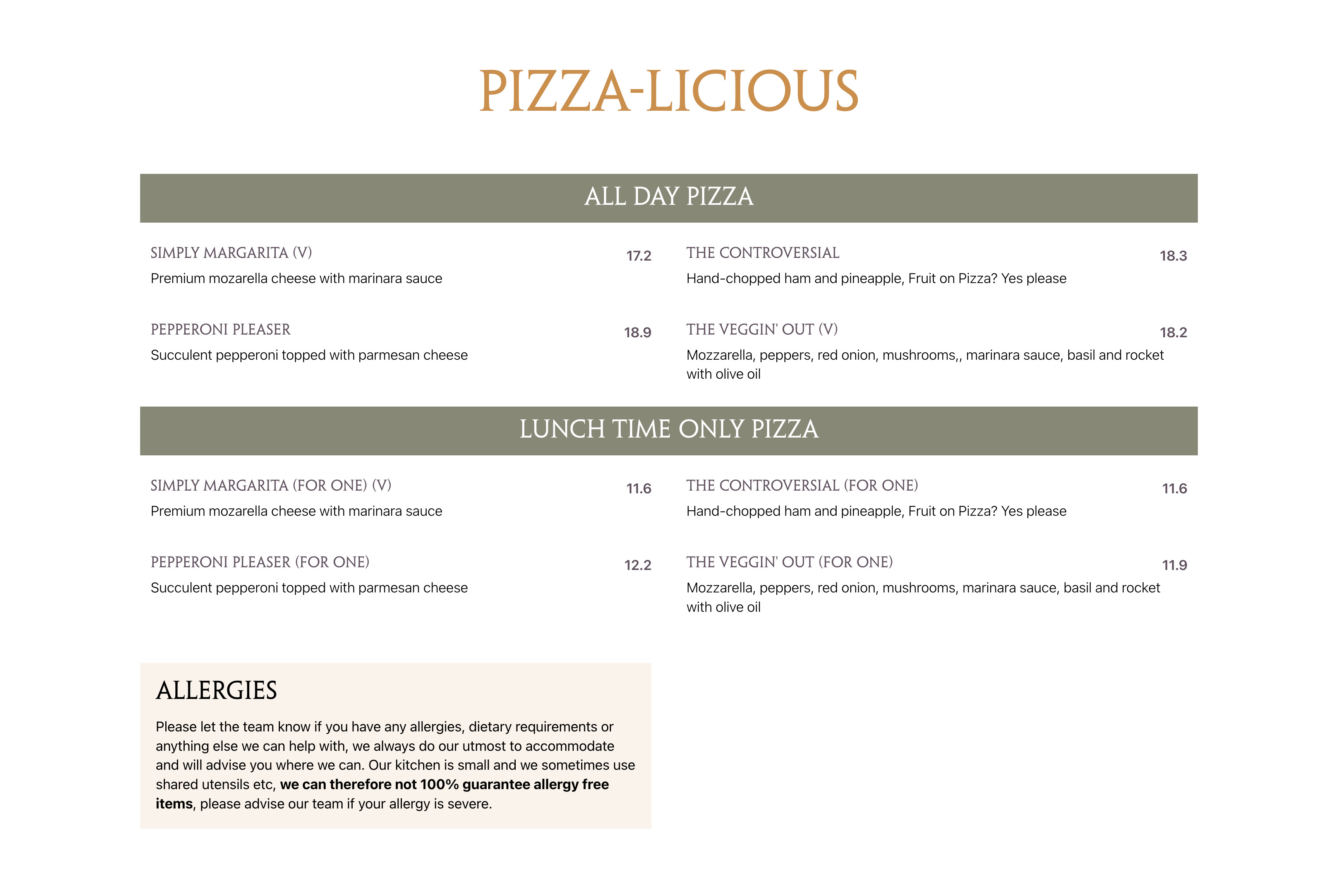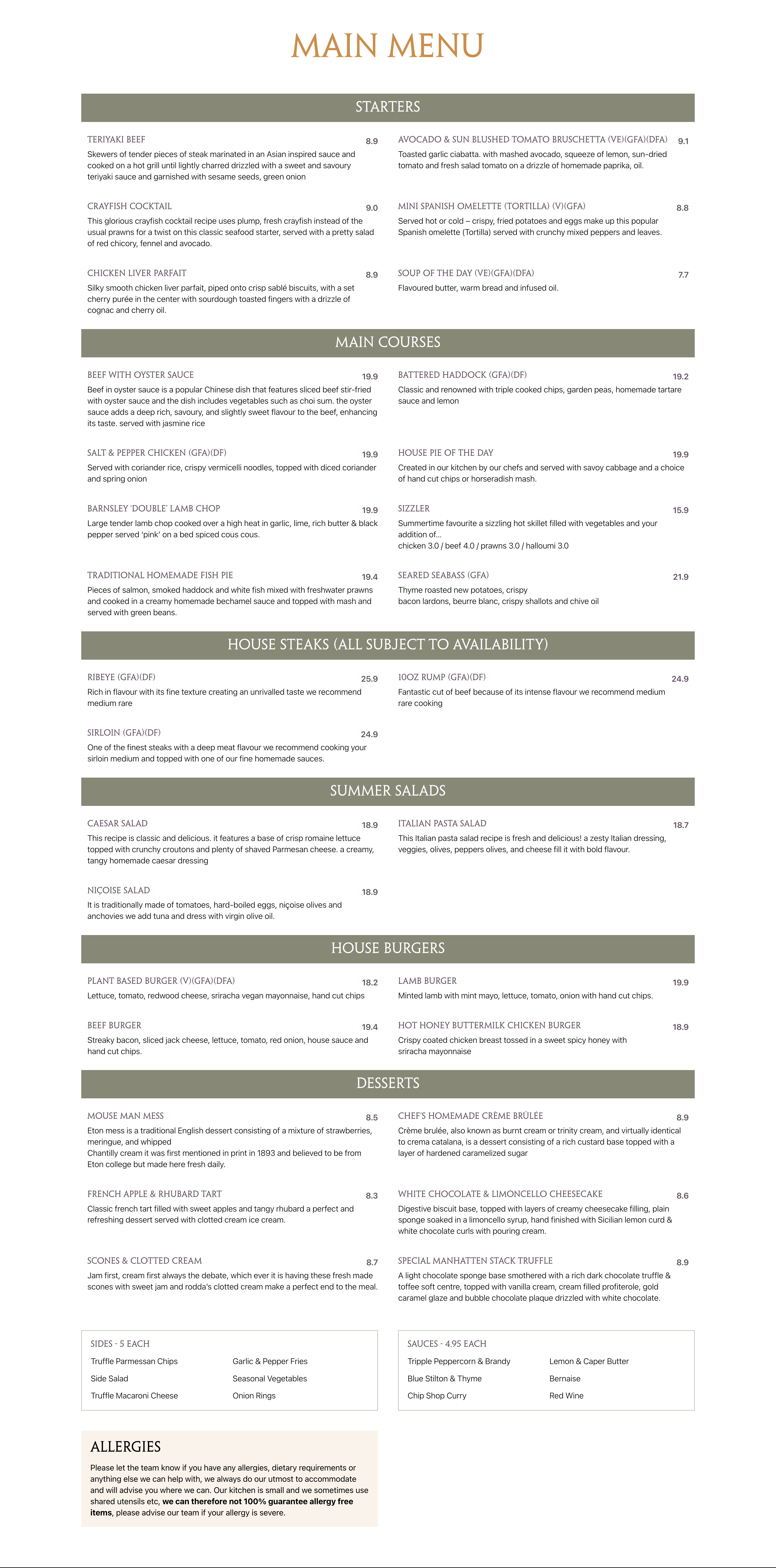 * The minimum spends are a guideline only and vary according to the day and time of the year.